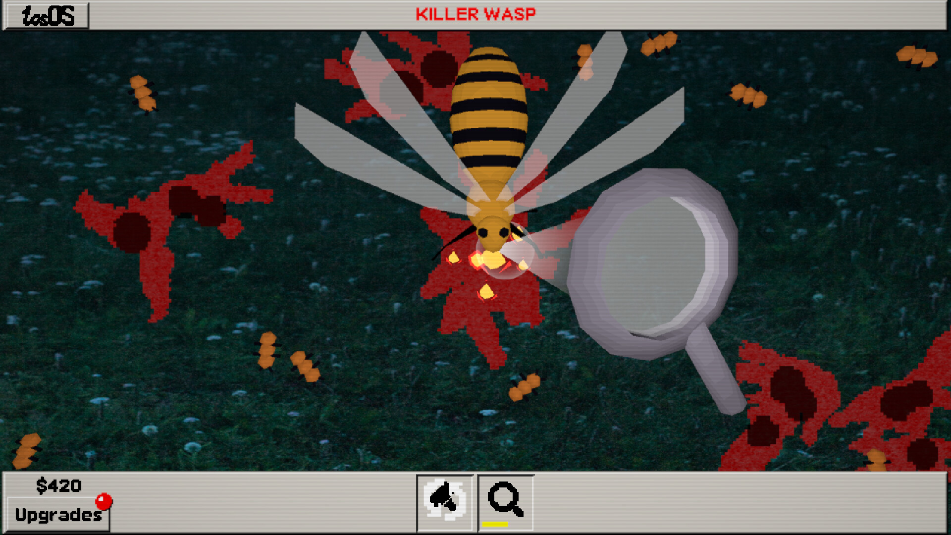 All kinds of bugs decided to take place on your monitor: from ants and termites that just walk around, to melolonthas that fly in and out, big centipedes that even split, - the game features a variety of enemies to deal with and get more dollars from.