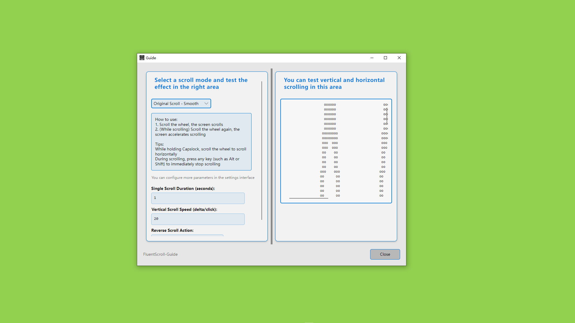 Zdefinuj ponownie swoje doświadczenie przewijania! Przewiń kółkiem myszy, aby interfejs przewijał się w sposób ciągły i płynny. Uzyskaj pełną kontrolę nad zachowaniem przewijania dzięki potężnym konfiguracjom niestandardowym.