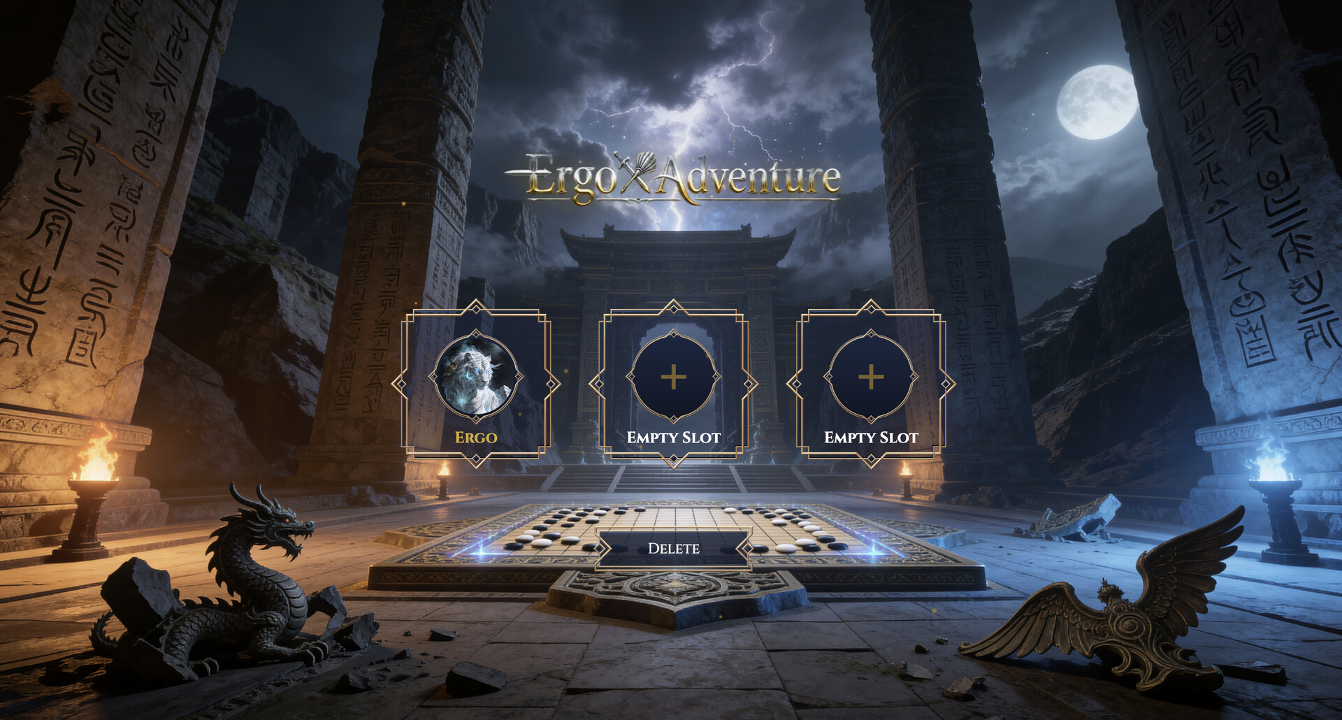 Ergo Adventure is a tactical strategy board game that fuses the timeless depth of Go with the explosive power of legendary heroes and mythic deities. Place your stones, claim territory, and unleash devastating abilities to turn the tide of battle.
