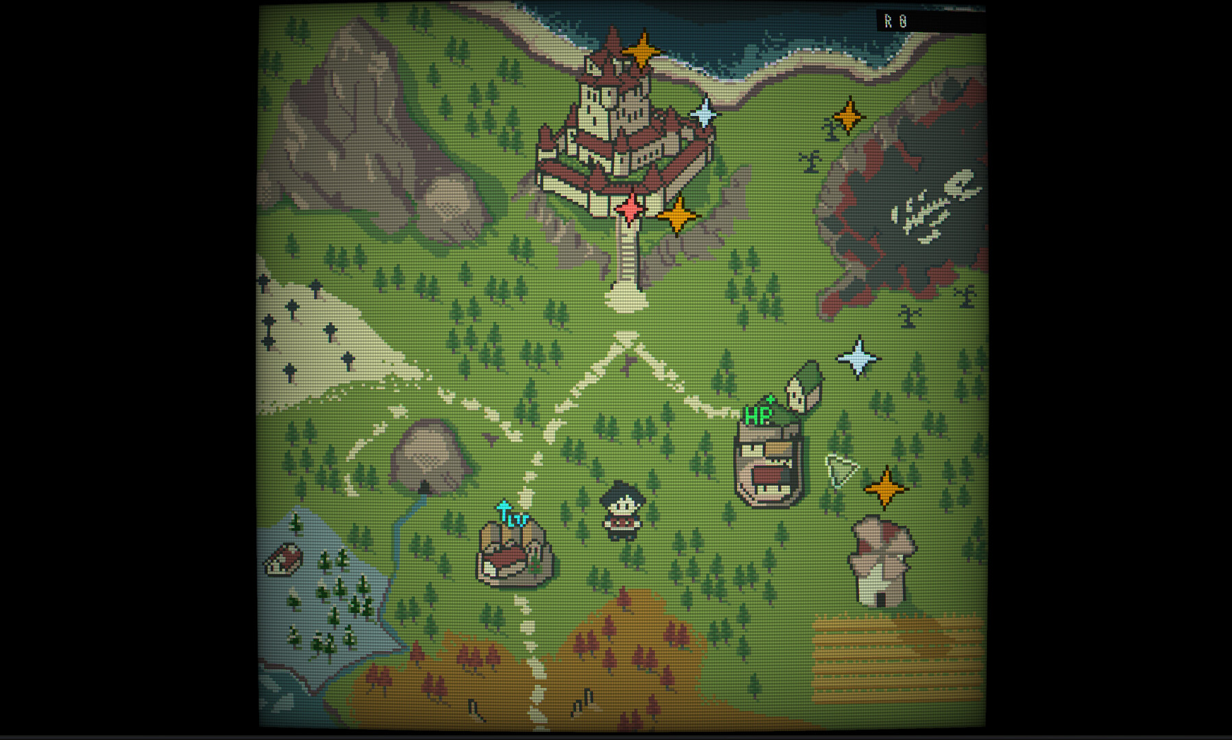 After defeating an enemy you'll acquire a currency called R. How much you receive depends on the enemy and how many hits you took. A battle resulting in a no-hit will grant you the max R reward for this enemy. Use your currency to restore your health or level up one of two stats : attack power or base health.