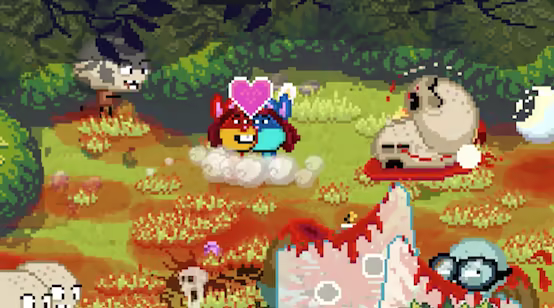 You will be thrown into a combination of old school arcade action, bullet hell chaos, cute retro pixel art and romantic love affair where the only thing that matters is to survive the never ending waves of mutants while defending a giant carrot and making out with your partner. Wait, what?! To release the tension during breaks, you can kiss your beloved bunny partner anytime in the game with the patented POWER KISS MECHANIC! You will need a steady hand and some mad skills to get on that high score list. Shoot your way through hordes of hungry mutants and saturate the forest floor with their gushing blood!