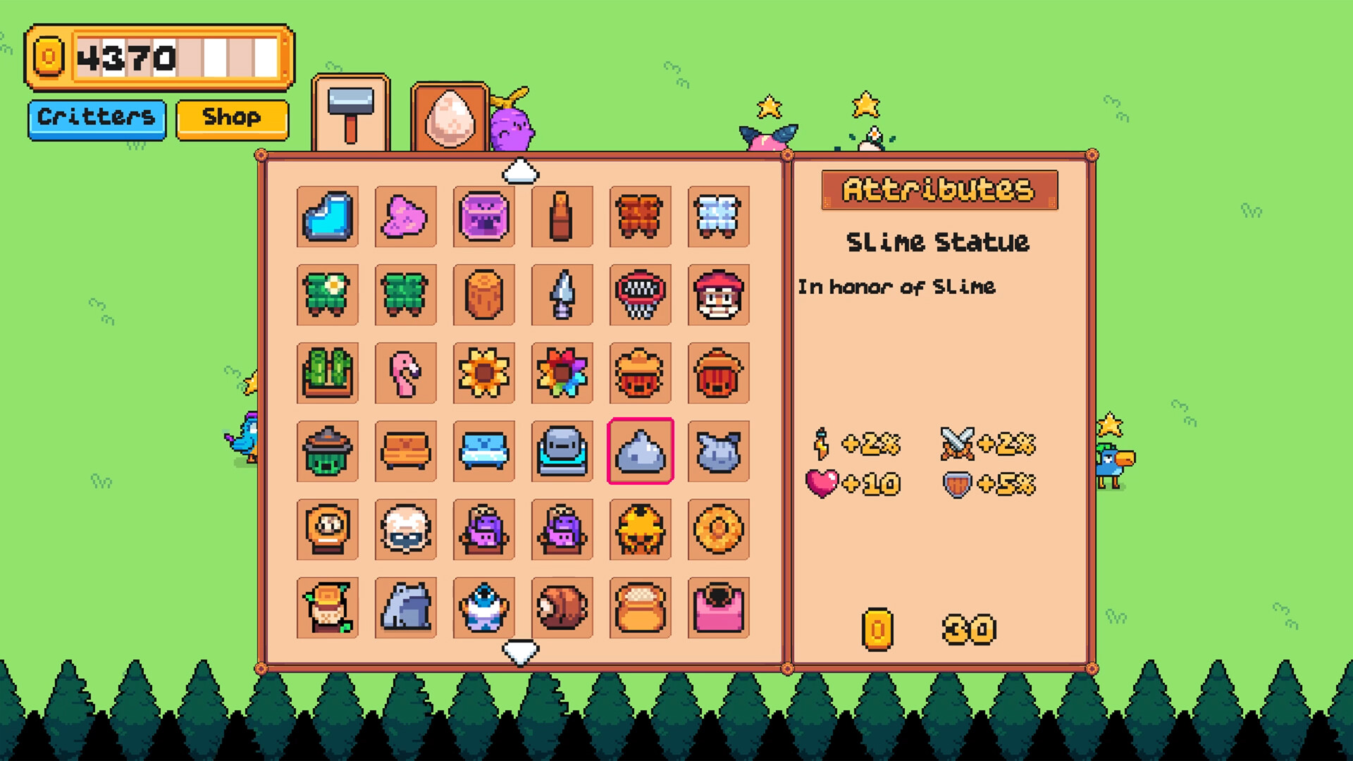 Placeable objects grant global buffs, class bonuses, aura effects, crop growth boosts, and more. Upgrade them, reposition them, and create devastating synergies.