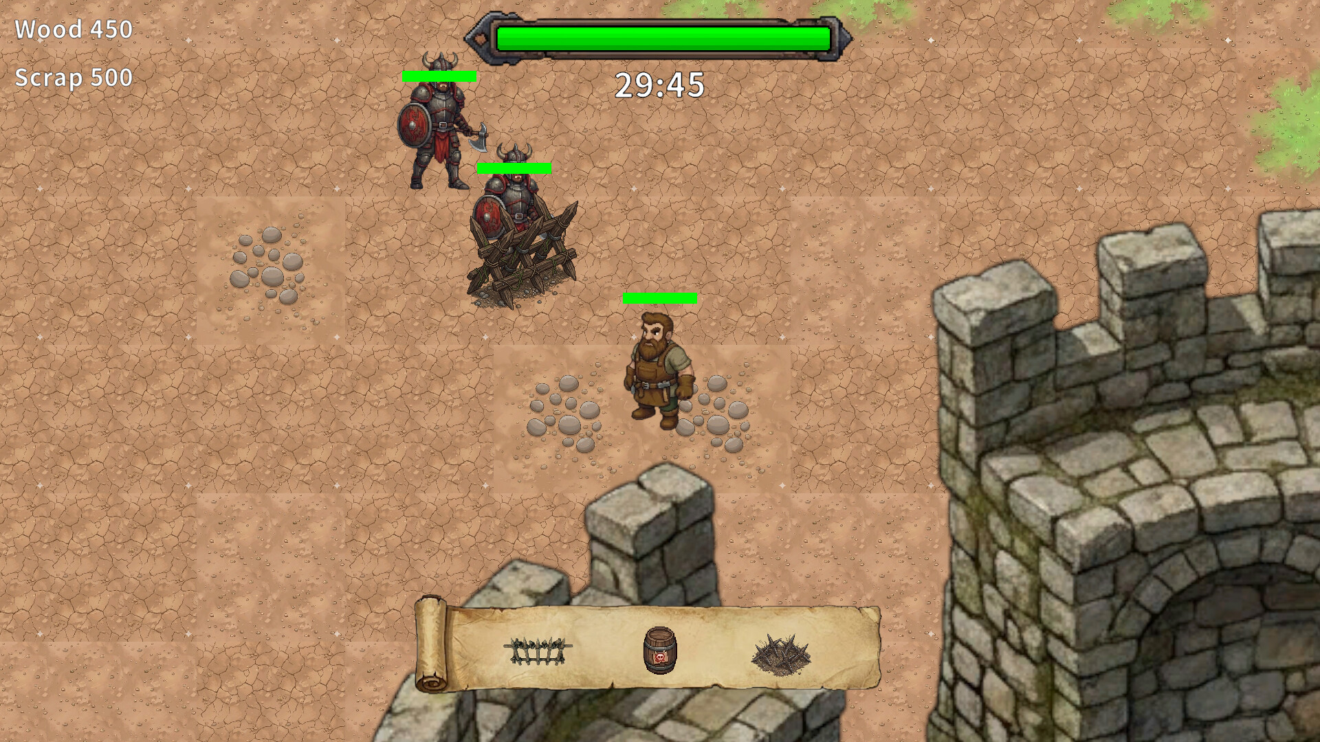Three experts must cooperate to save the village. One player can control three characters simultaneously. You can summon powerful units by spending large amounts of resources. Gather resources to continue your defense. Construct buildings to slow down the enemy's advance.