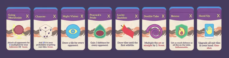 플레이 가능 캐릭터 4종, 즉 4개의 '길'이 있습니다. 어떤 길을 참새가 선택할까요? 불은타오르고, 노래는 매혹하고, 물은 증식하고, 유령은 보호합니다. 4가지 길에선 각각 고유 패와새로운 와일드패 조합, 독특한 플레이 방식과 전략이 제공됩니다.