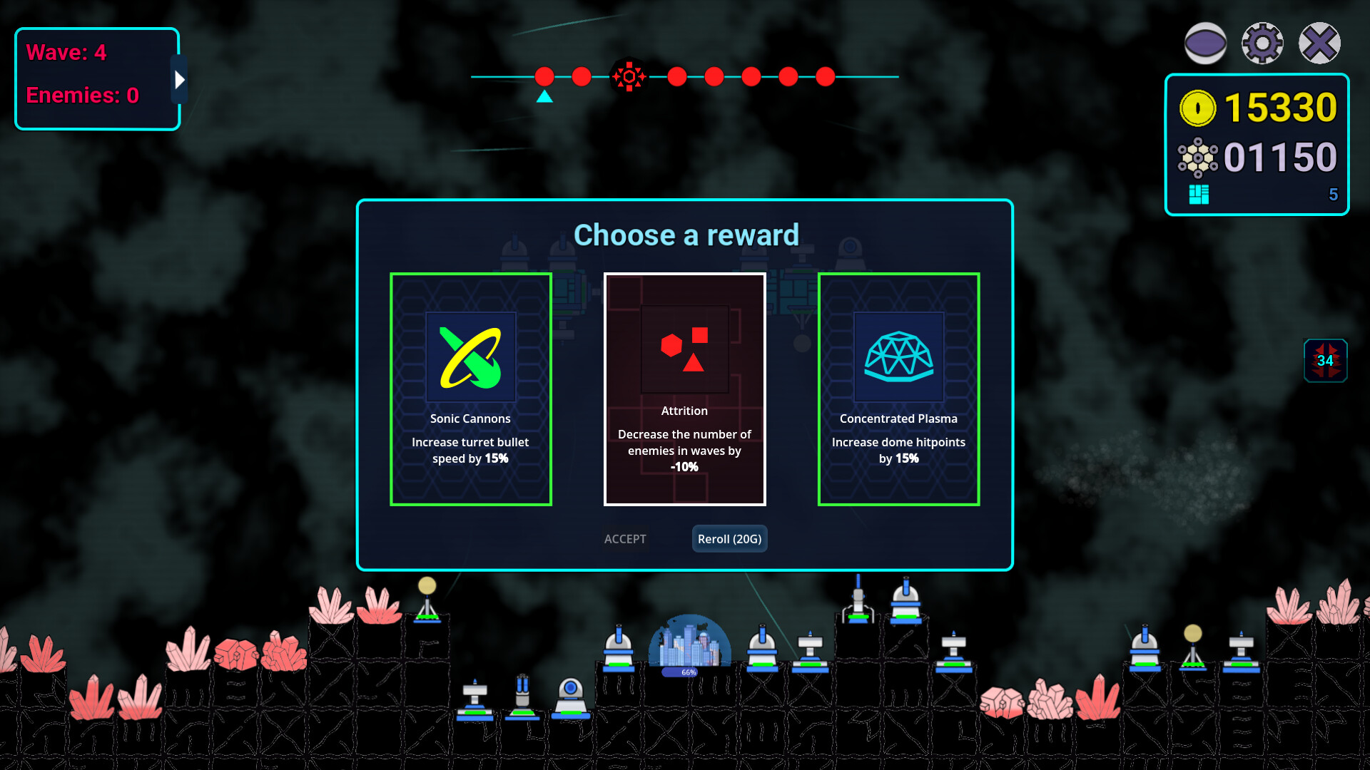 In Plasma Dome you must defend your city from an aerial assault by geometric entities arriving from another dimension. A tactical Tower Defense with roguelite progression, no predefined paths, only strategy and survival.