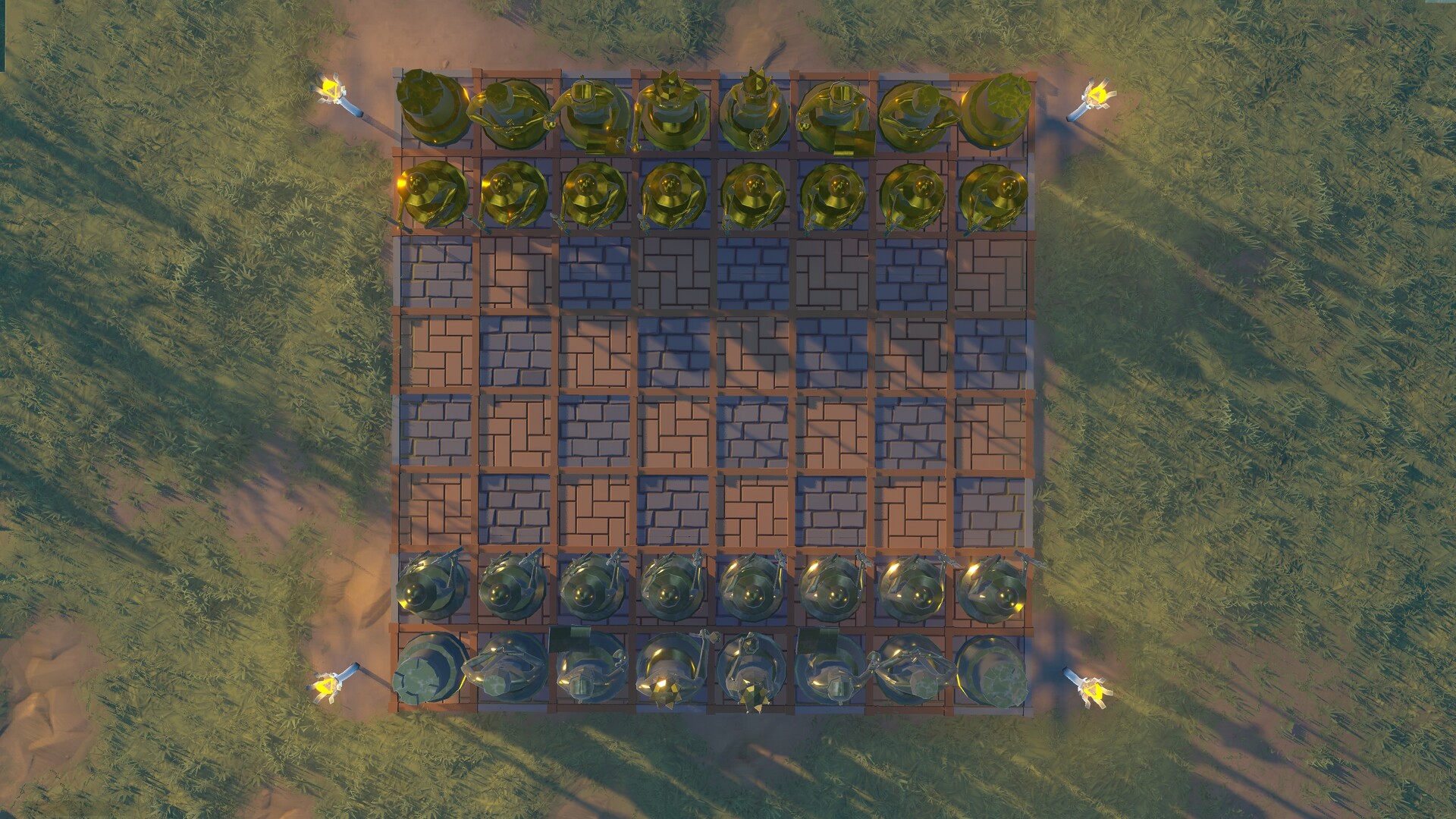Pakiet wsparcia zawiera sześć wielkich posągów figur szachowych do wykonania z drewna, wapienia, srebra i złota.