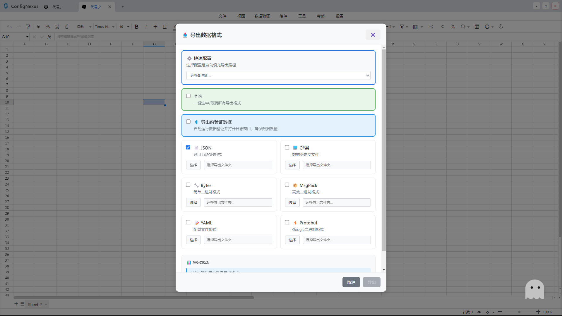 One-click export of configuration tables to common formats used in game development, meeting different project needs: