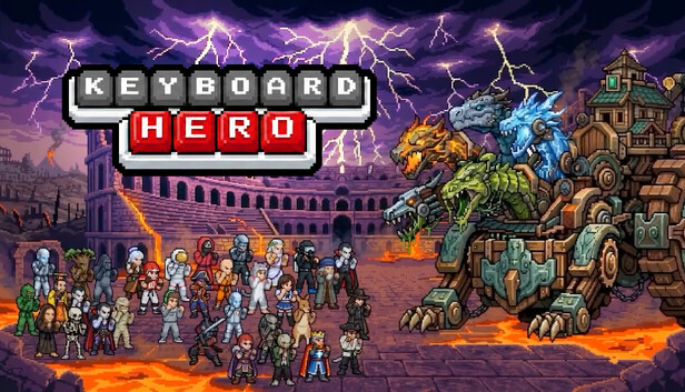 Keyboard Hero is an idle desktop game where every key press, mouse click, and even controller input powers a growing team of heroes.