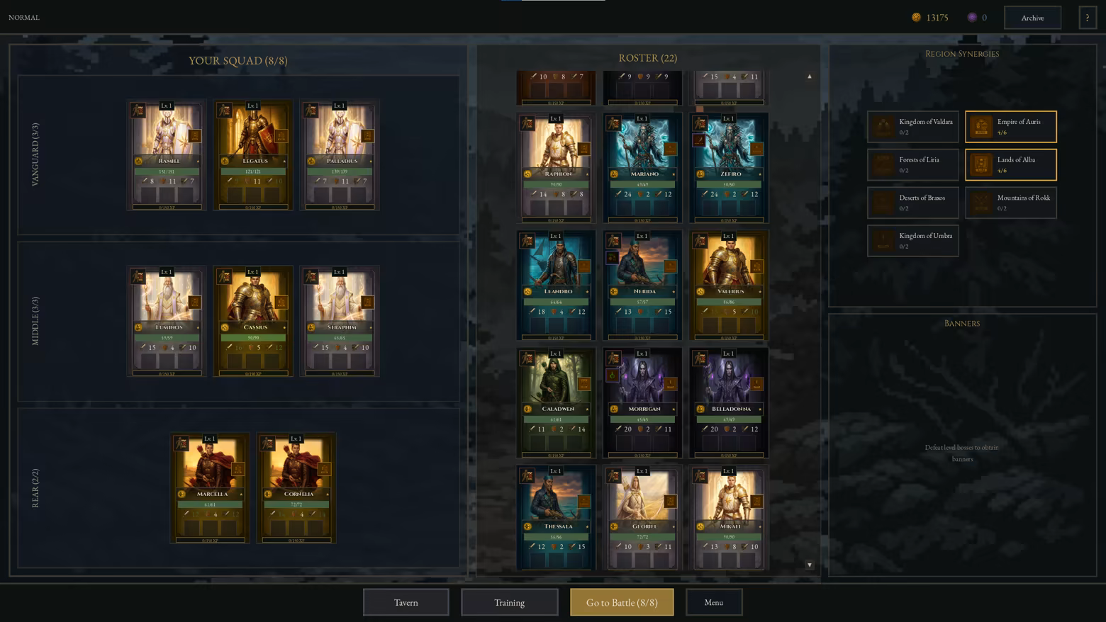 You assemble a squad from a pool of units, each with its own role, strengths, and scaling potential.
