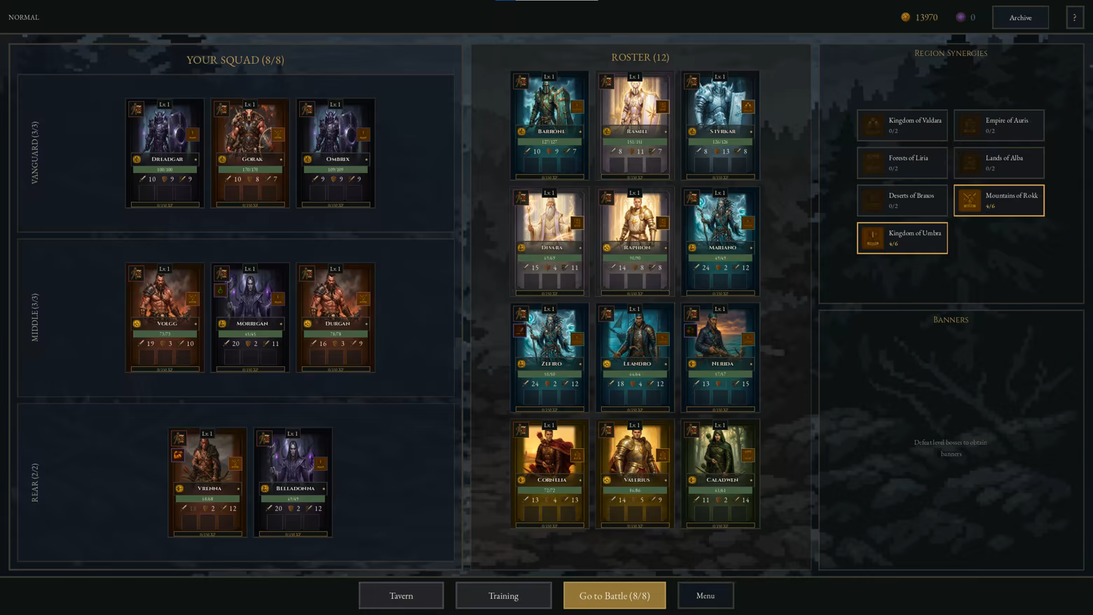 You assemble a squad from a pool of units, each with its own role, strengths, and scaling potential.