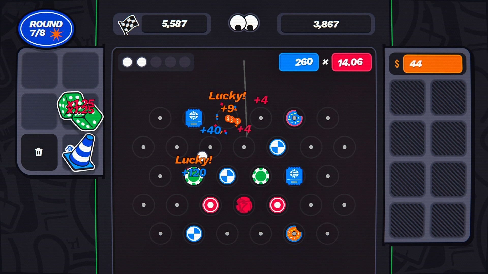 PxS is a pachinko-roguelite about scoring big numbers. Build your board, pop pegs, and discover run-breaking stickers.