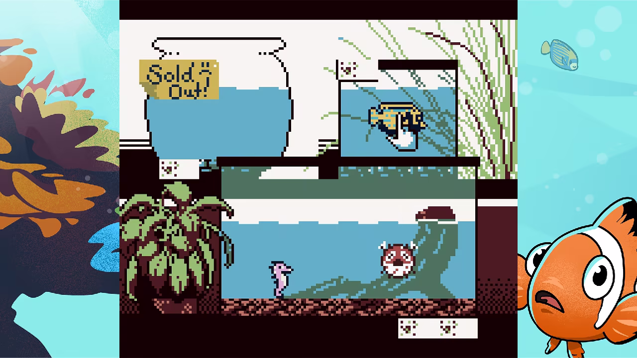 Pocket Aquarium takes the best of virtual pet games from the 90s and early 2000s and adds a unique twist with wild minigames. A collection of cute reef fish await, with minigames ranging from juggling in a circus to blasting aliens in space.