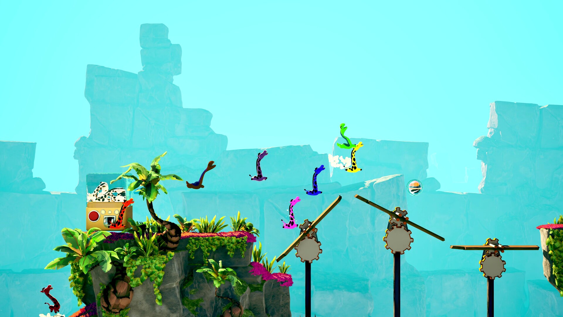 Unlimited local multiplayer chaos! Connect infinite controllers & phones, control wobbly giraffes, dodge physics-based obstacles, and fight to reach the rocket ship first. The more players, the more chaos!
