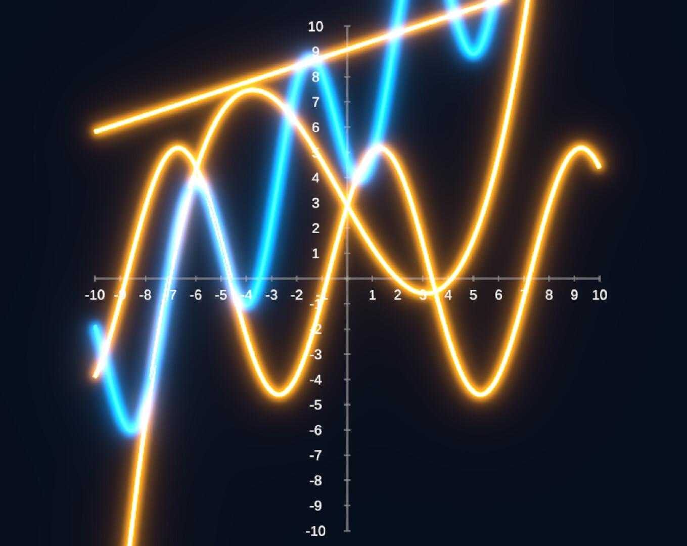 What starts as a single line grows into layered functions, wider coordinate ranges, and richer intersection patterns.