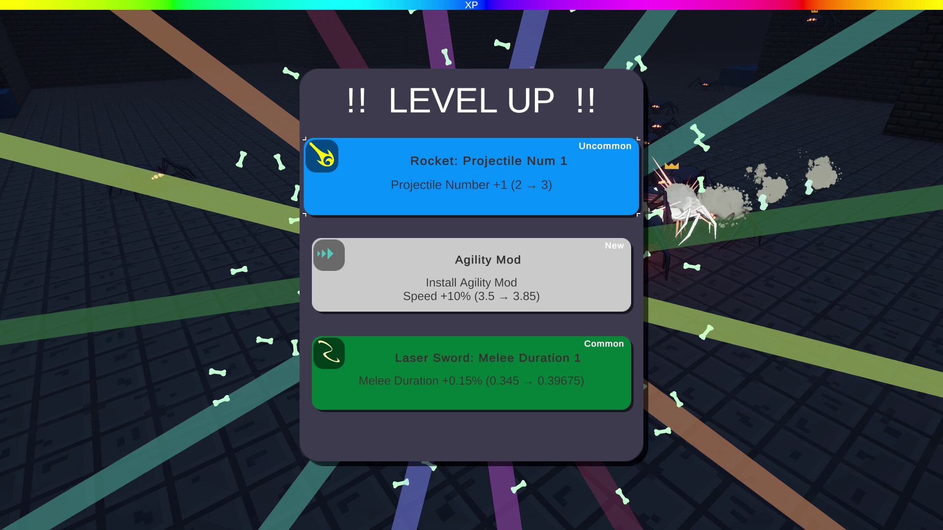 Crush enemies to collect Bone XP and level up. The more you slay, the stronger you become. Every upgrade is randomized and comes in different rarities, ensuring no two runs ever feel the same.