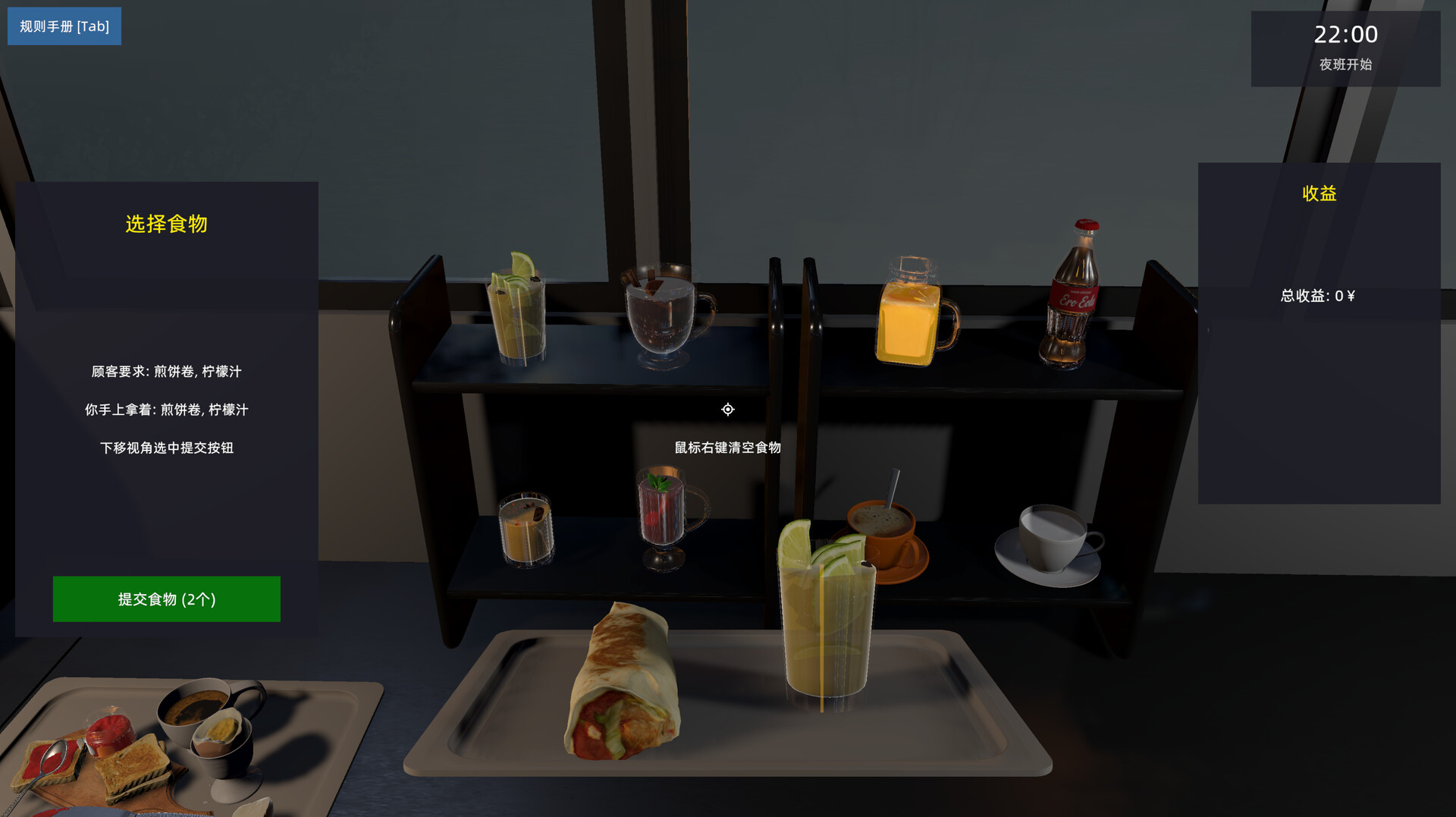 顾客会要求各种食物,你将在餐车内拾取食物并提交给顾客。