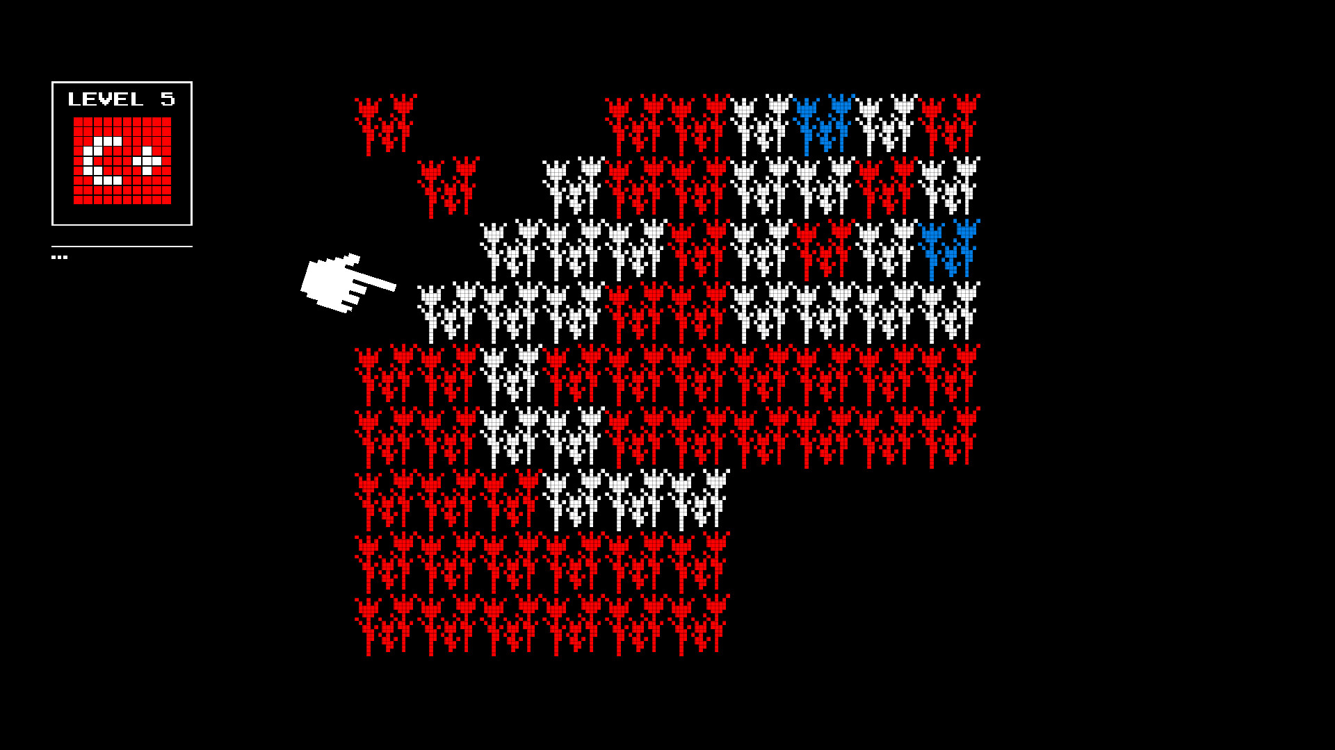 Flowers spread on their own, 4-directionally, at unpredictable intervals. When they sprout in new spaces, they may subtly mutate. Sometimes becoming exactly the color you need, exactly where you need it… sometimes not. To guide a color across the field, you'll have to carve pathways, dismantle parts of your work, and carefully make room for growth.