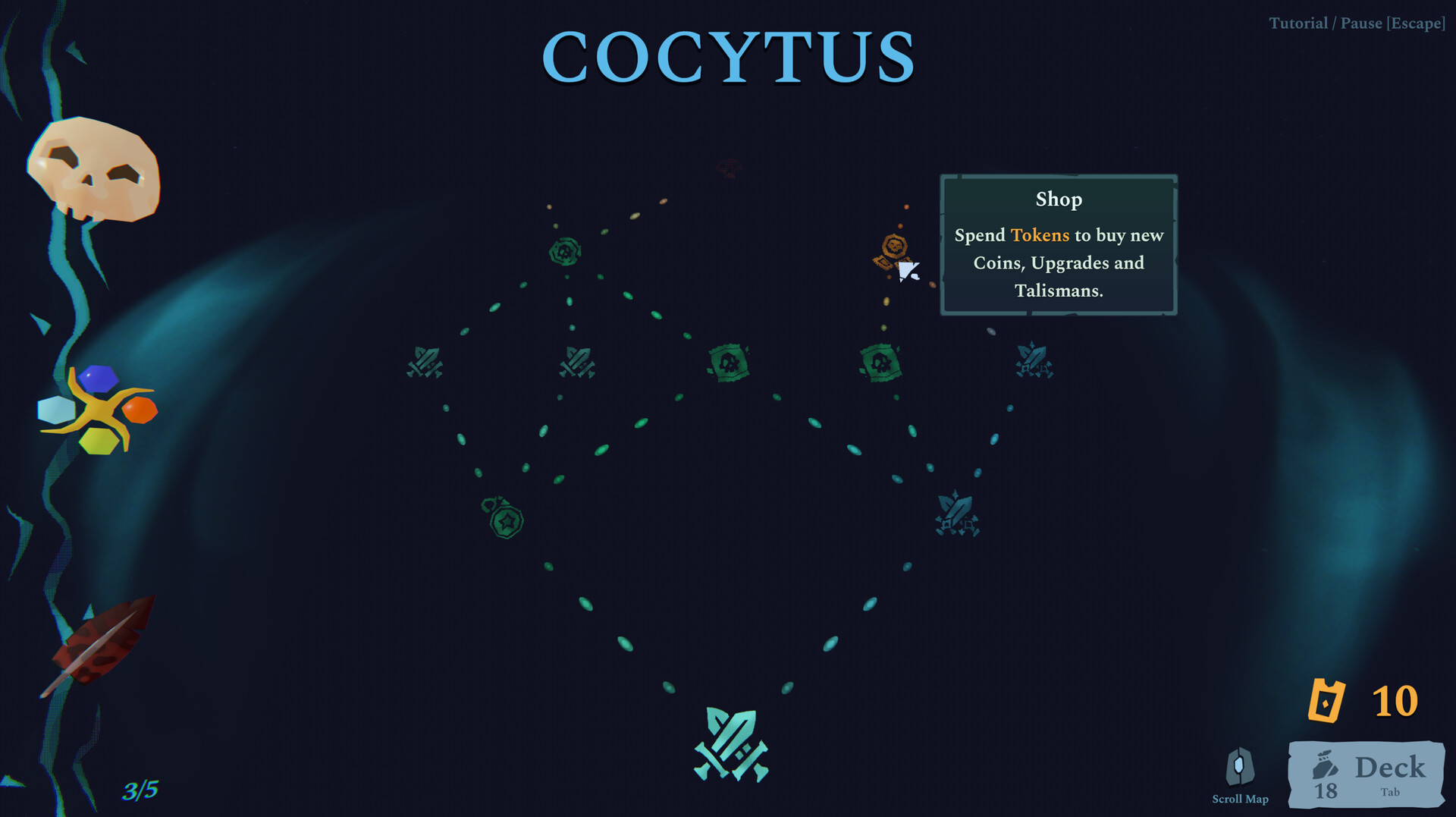 A roguelike deckbuilder, about flipping coins to cross the Rivers of Hades.