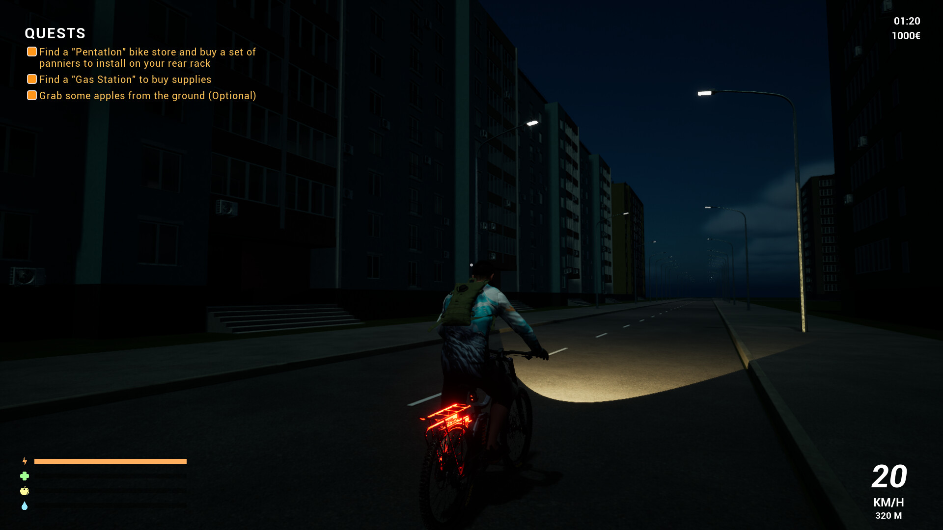 Bikepacking and cycle touring simulation game. Survive with the resources you carry on your bike as you travel through different environments and routes. Camp in your tent, buy food, manage your energy and inventory, and embark on the adventure of freely traveling by bike.