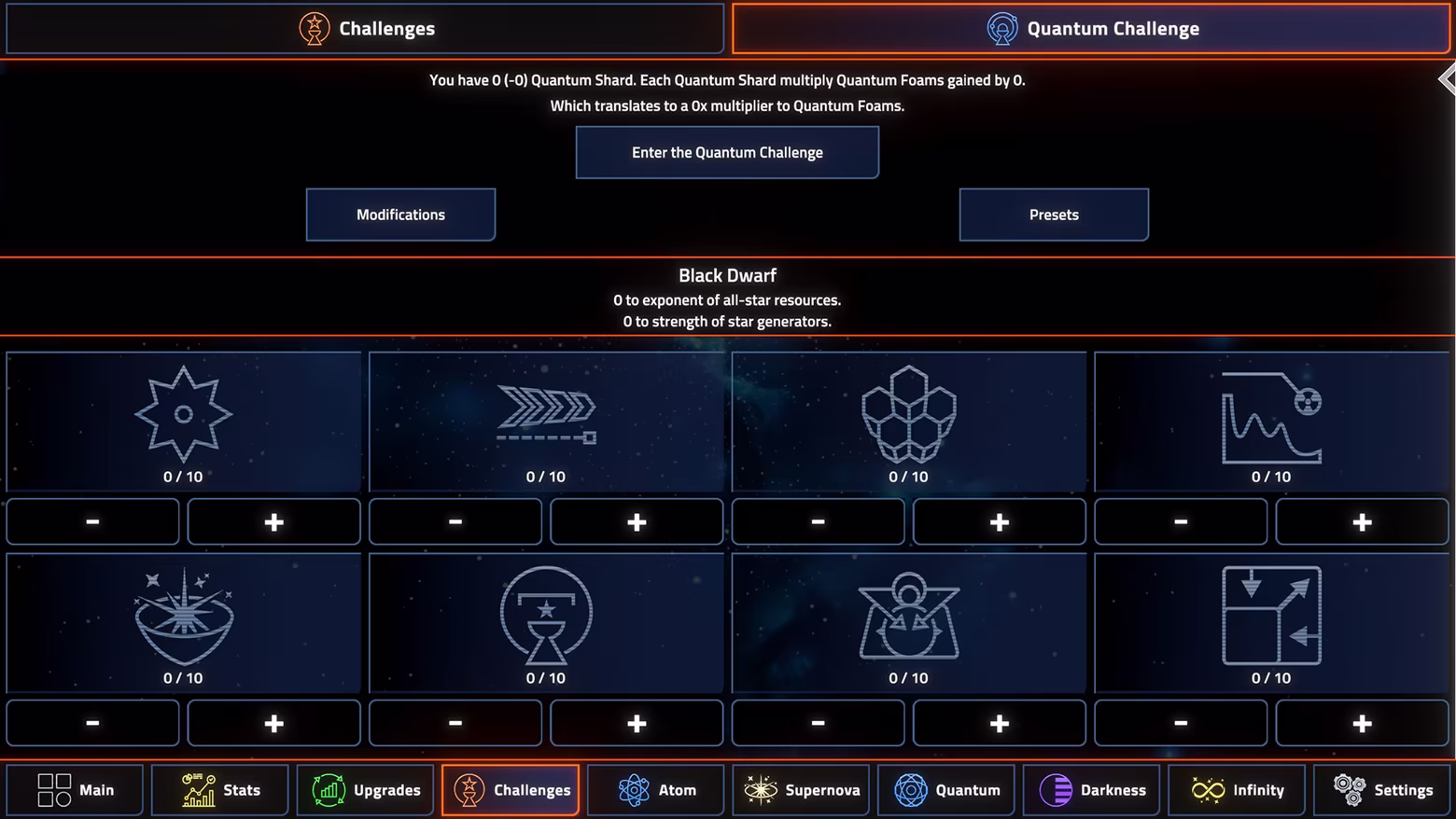 And just when you think you've stabilized growth: Atom. Supernova. Quantum. Darkness. Infinity. Entire systems collapse into higher systems. Old mechanics become stepping stones. Scaling that once seemed impossible becomes trivial and replaced by something worse. Much worse. Probably unfair. But totally addictive.
