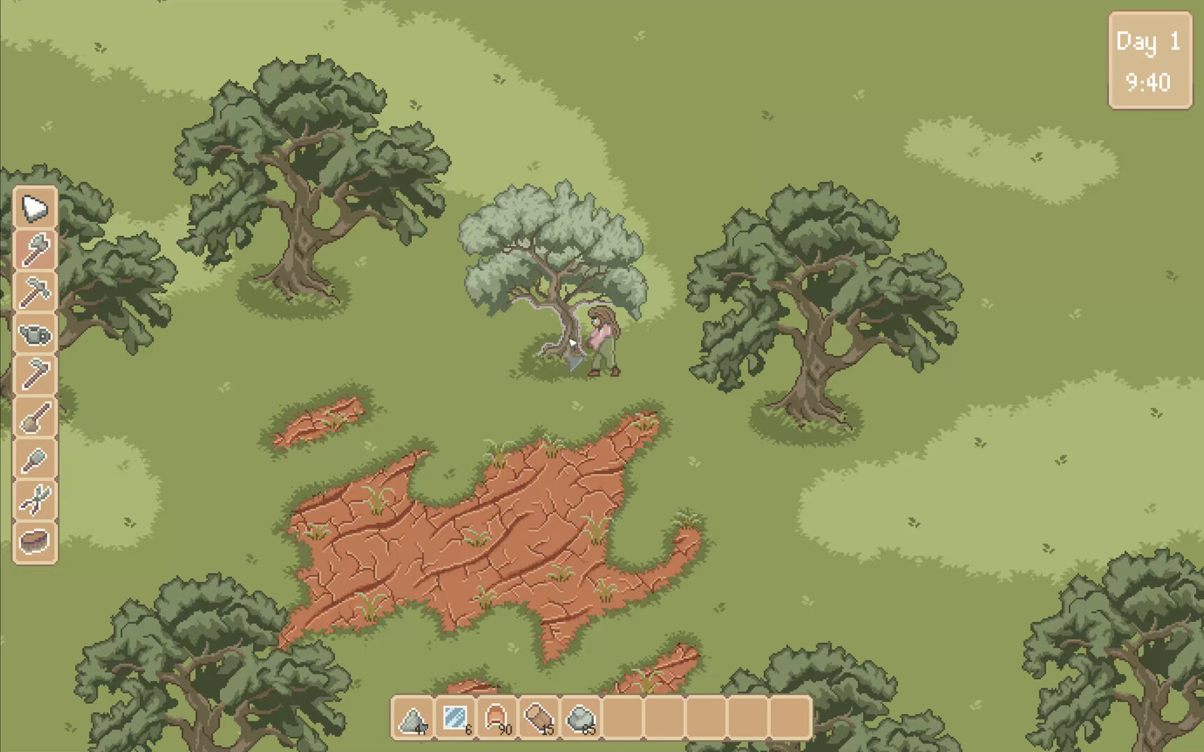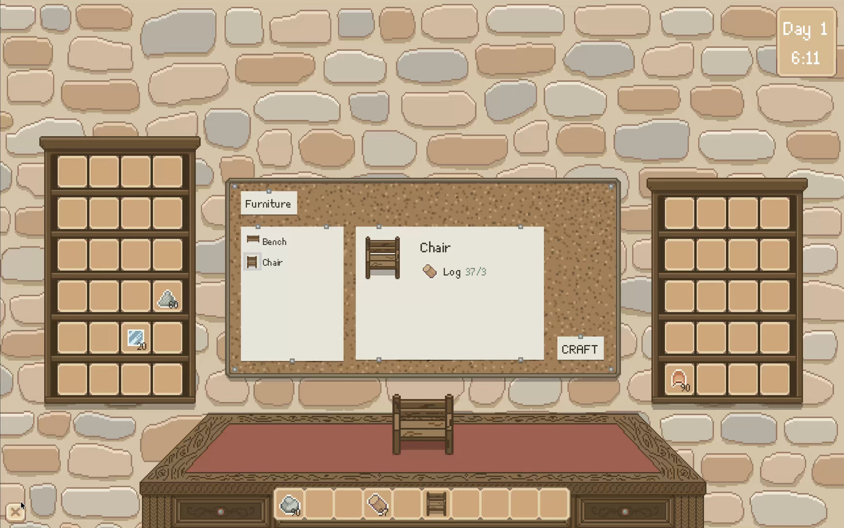 Collect stone, clay, wood, and other materials from the surrounding countryside. Craft supplies you need to rebuild.