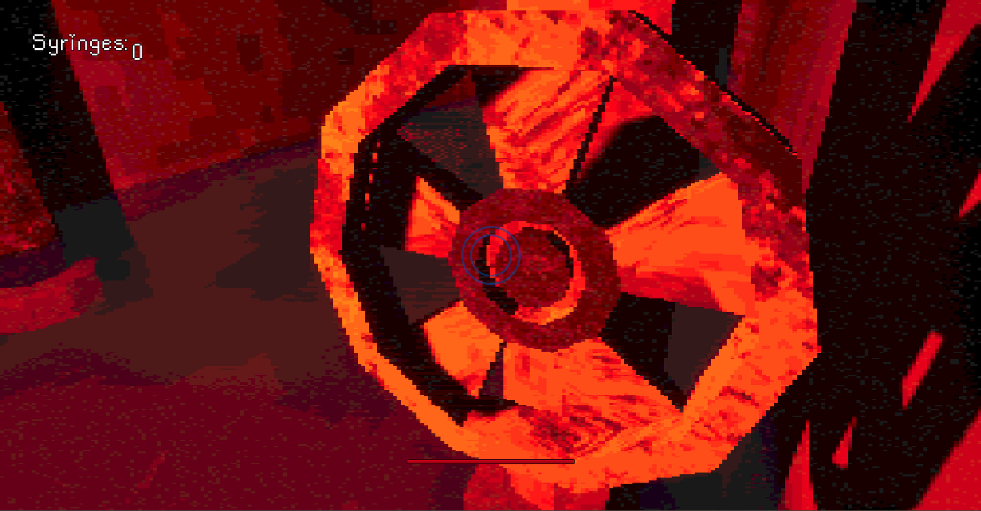 the game's combat focuses on swapping between your melee weapon and your gun to deal with the enemies in each area, while collecting syringes to heal yourself.