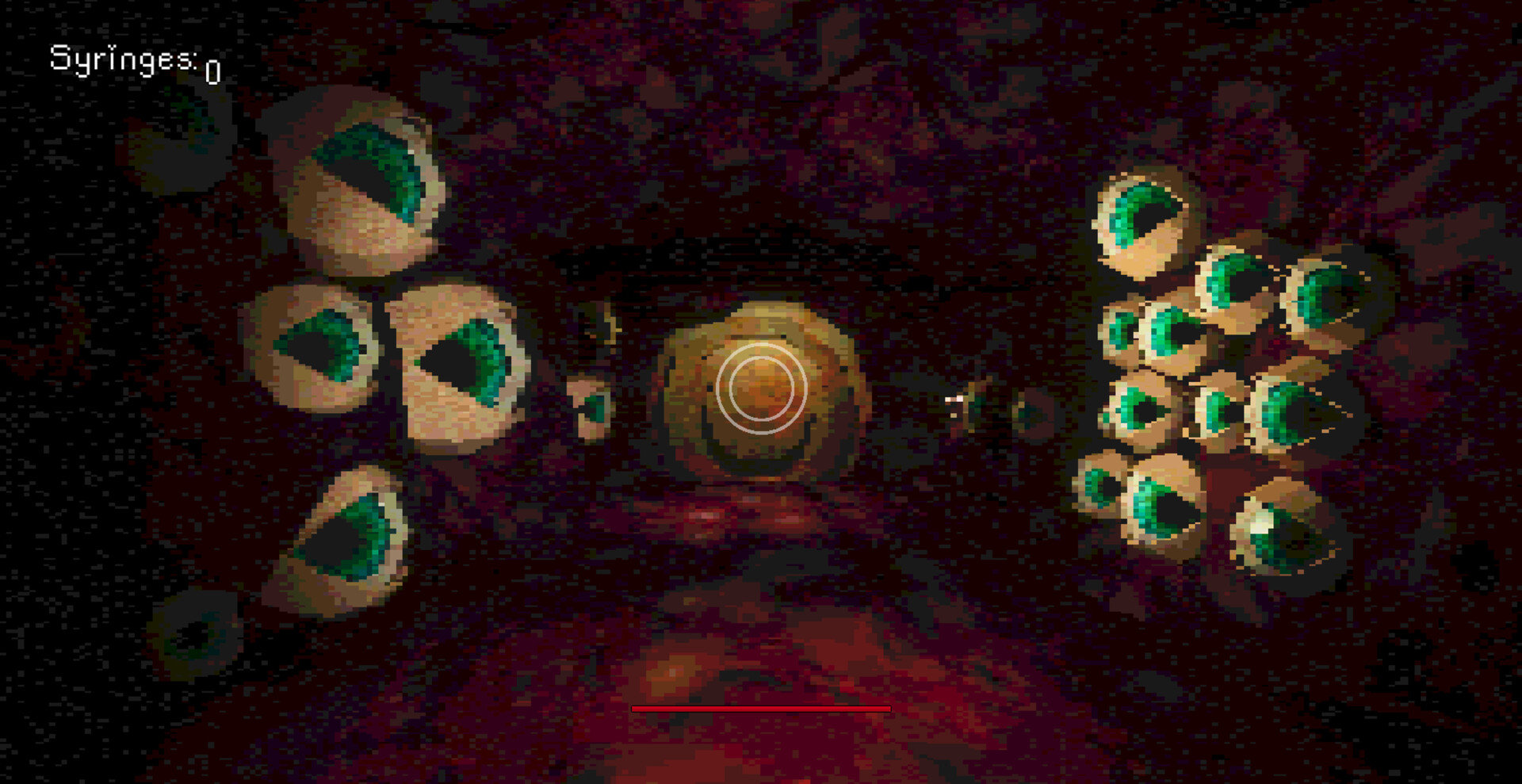 the game's combat focuses on swapping between your melee weapon and your gun to deal with the enemies in each area, while collecting syringes to heal yourself.