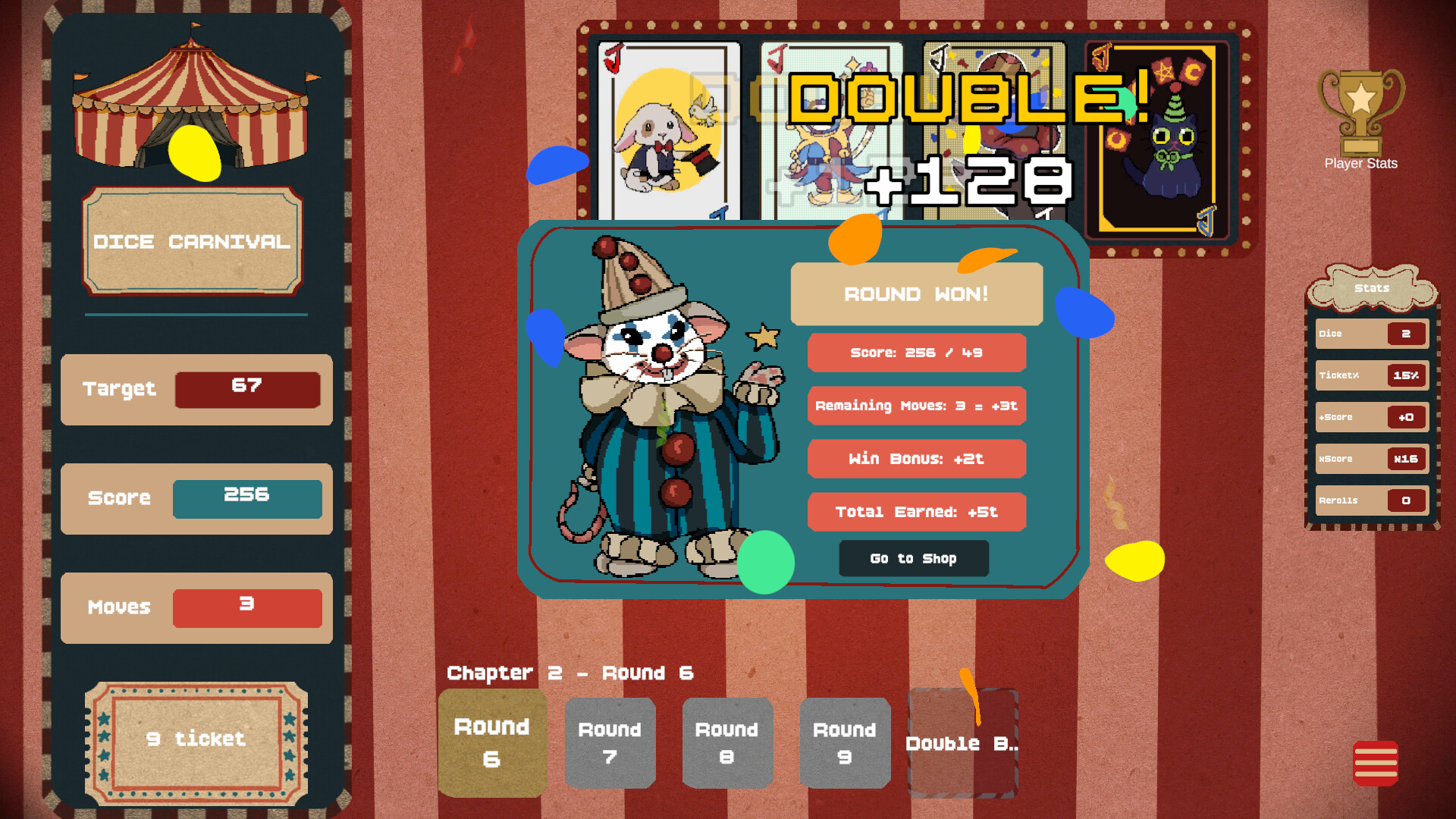 Dice Carnival, zar atışlarından esinlenen ve güçlü sinerjiler oluşturarak büyük kazançlar elde etmeye odaklanan roguelike bir deste oluşturma oyunudur.
