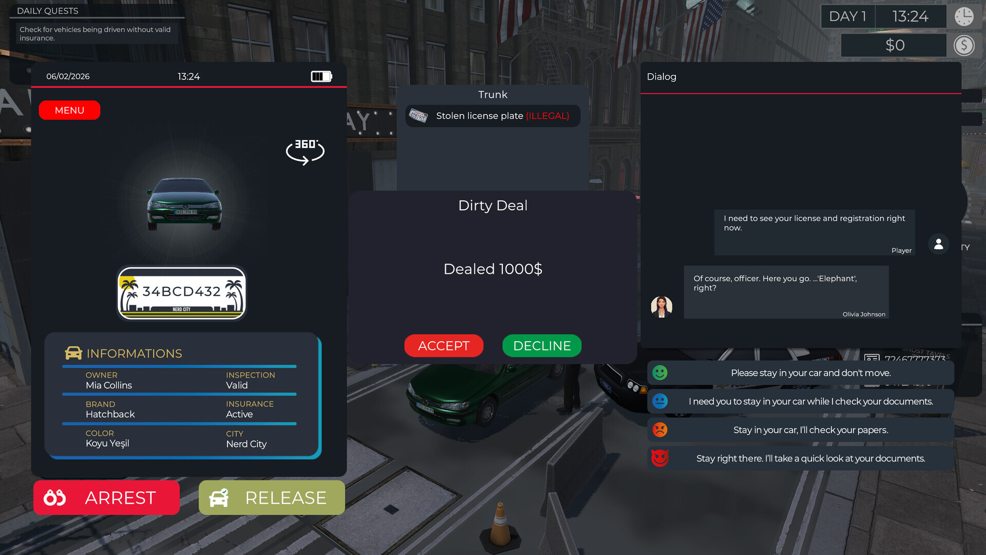 In Nerd City, waar misdaad, leugens en chaos heersen, is jouw checkpoint de laatste verdedigingslinie. Maar dit gaat niet alleen over verkeersdienst. Je familie is ontvoerd door een meedogenloos Kartel. Hen redden hangt af van je scherpe ogen, je vermogen om leugens te detecteren en de moeilijke keuzes die je maakt.