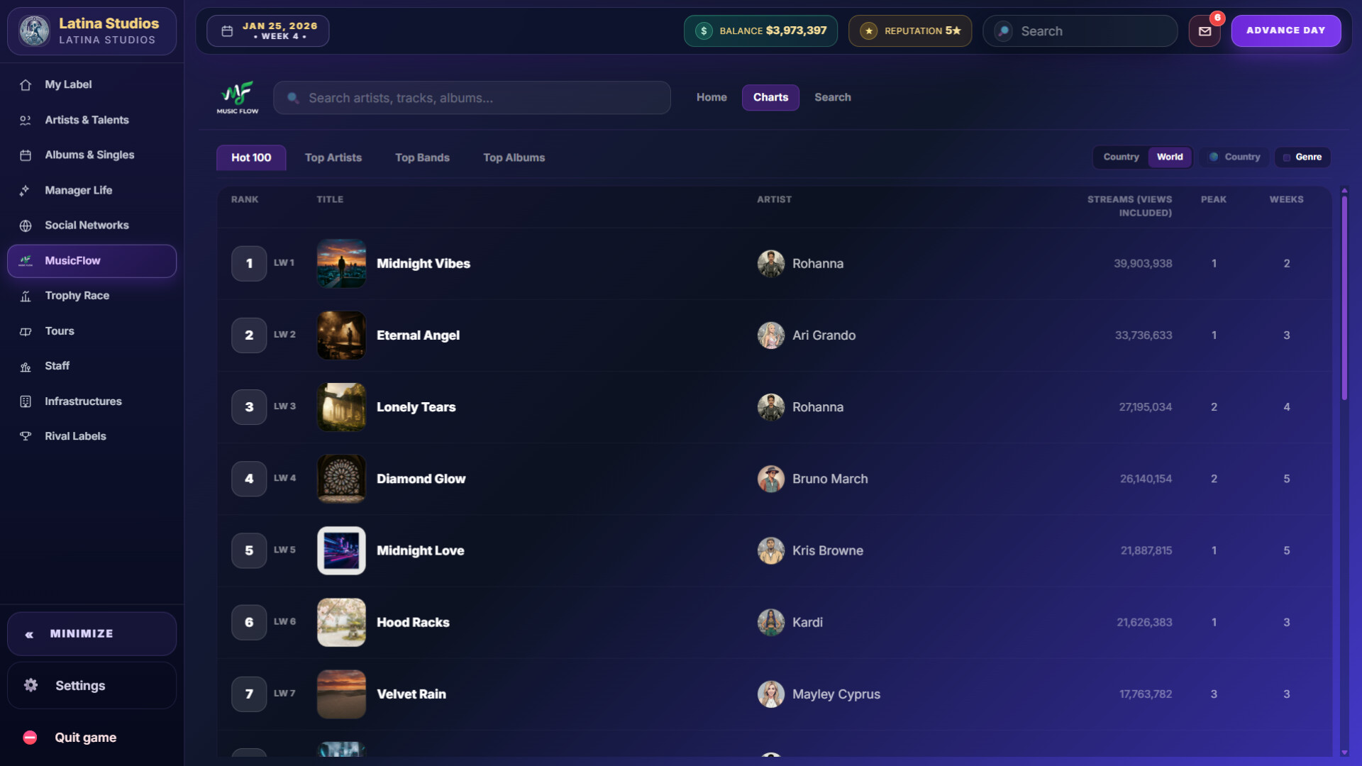 My Music Label is a music management and simulation game where you take full control of your label. Discover young talents, manage legendary artists, and shape the evolution of the music industry. Every decision influences careers and the history of music.