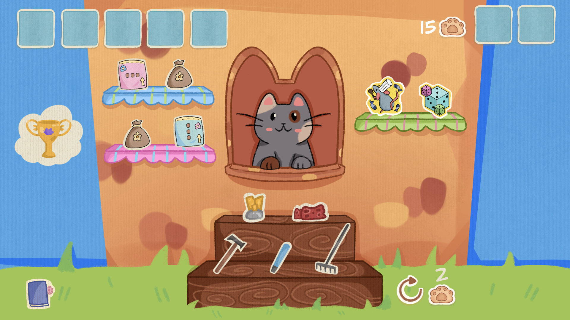 • Soit stratégique et passe toutes les manches afin de finir le roguelike pour obtenir des récompenses et obtenir d’autres chats et meubles