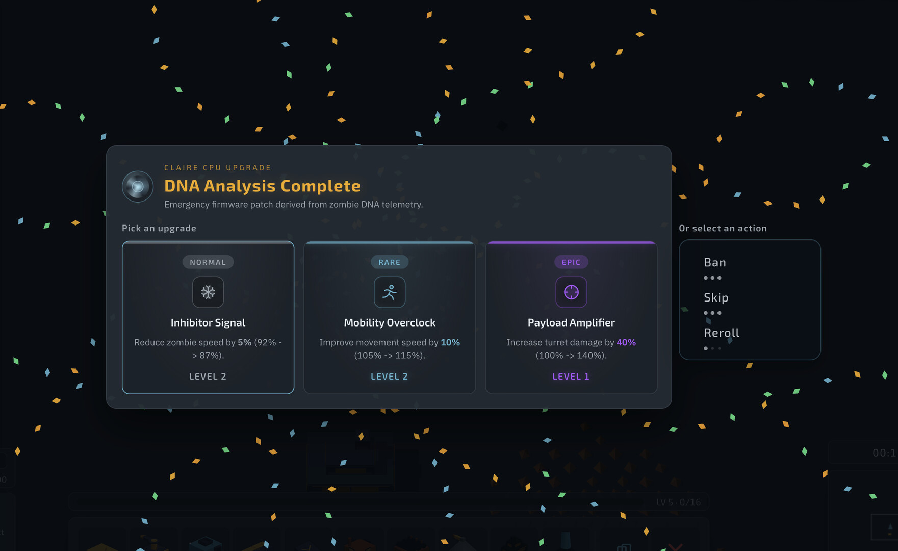We don't know what happened on Earth. Sending Zombies' DNA to CLAIRE might help us receive CPU Upgrades for the Operator. Pick wisely, as only 6 kind of upgrades can be chosen from.