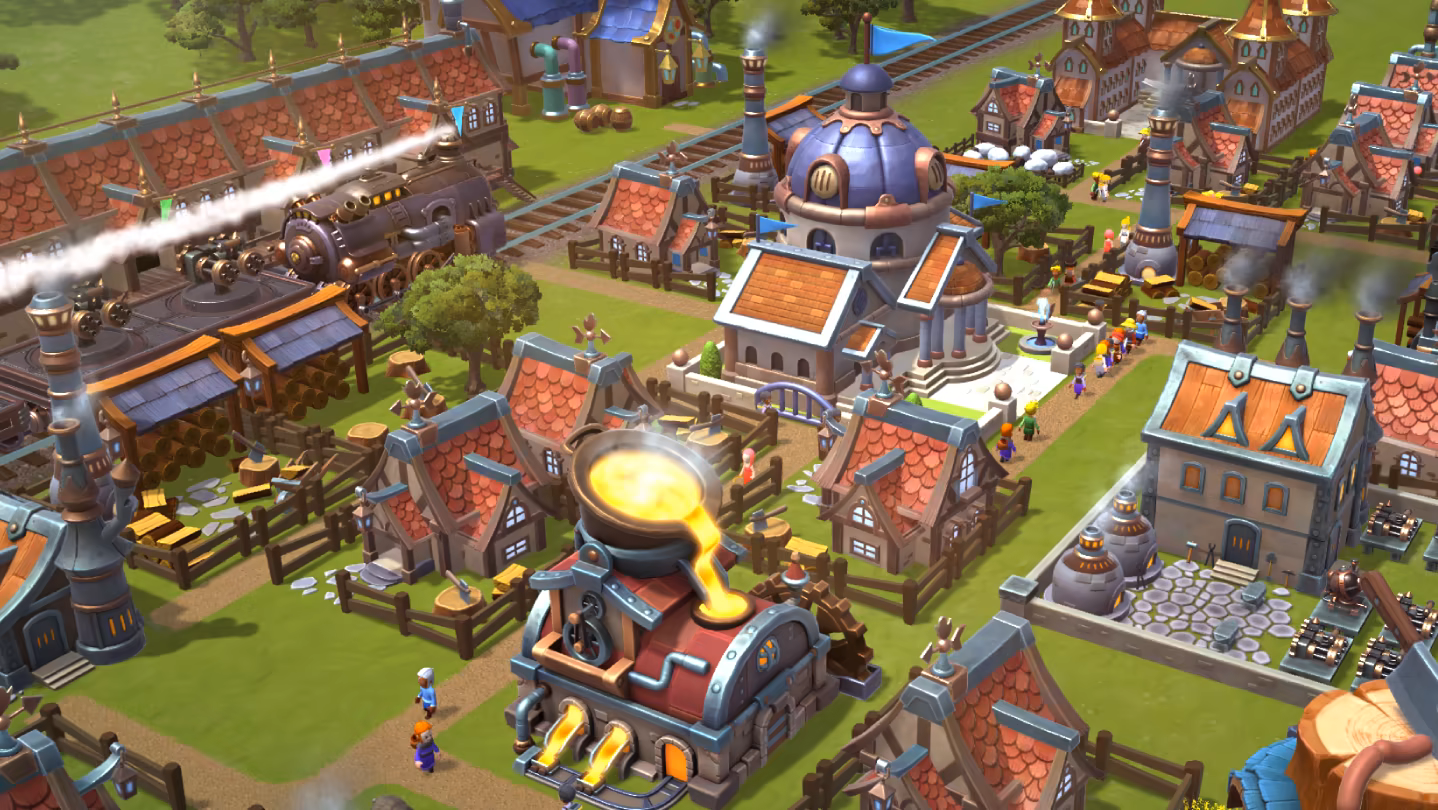 Construct a thriving town in an idyllic realm to support your campaign against DemonCorp. Build homes for your villagers and production buildings to generate the resources needed for your unionization effort. Manage resource flows to keep your people happy while crafting powerful parts to upgrade the DOOMTRAIN and its arsenal.