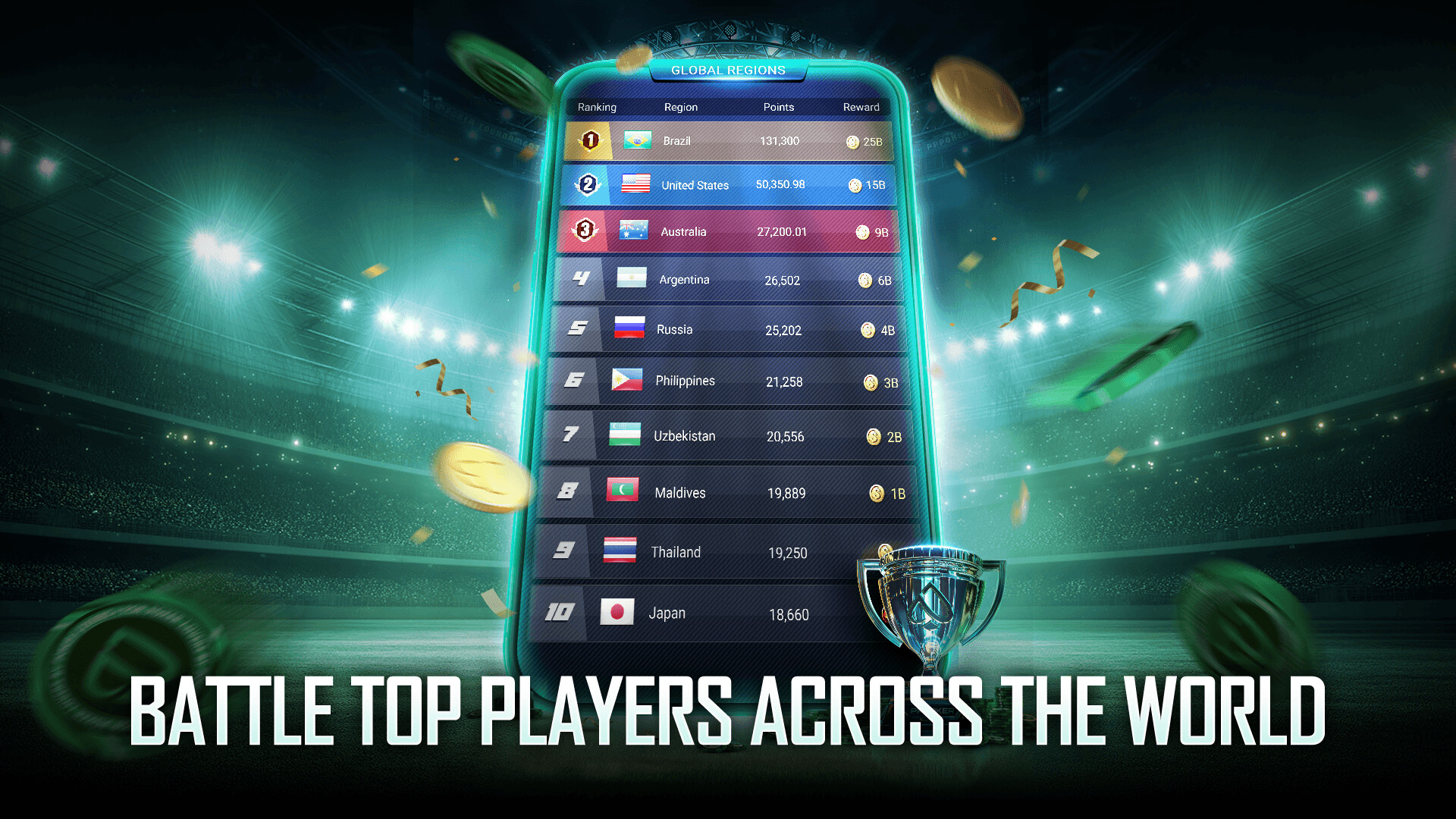 【Global Tournaments】 Compete in tournaments against players across the world!