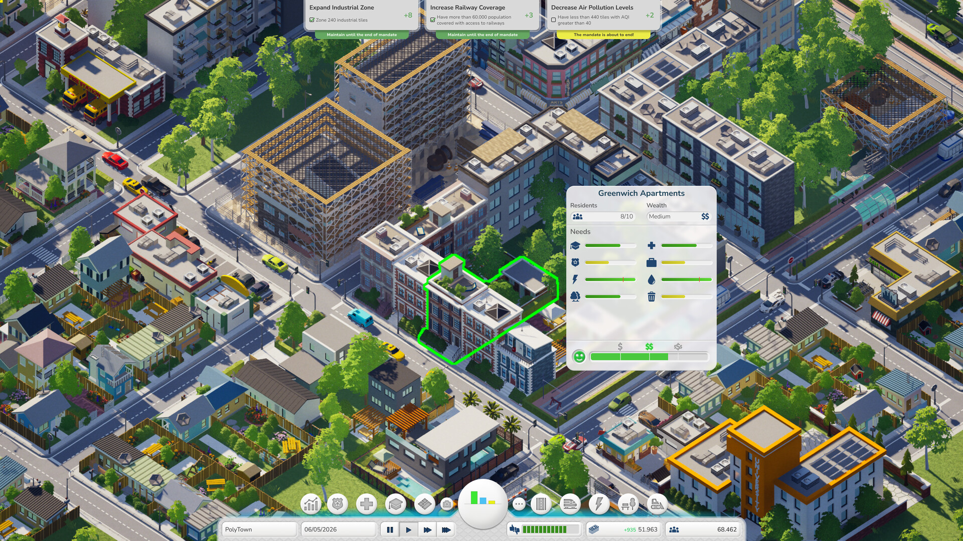 To keep things running smoothly, your city must be planned in advance. Decide where residents can build their houses, where shops open, and where factories appear. Zoning helps you prevent citizens from getting sick near polluting industries, ensures that shops have enough customers, and factories can deliver their goods on time.