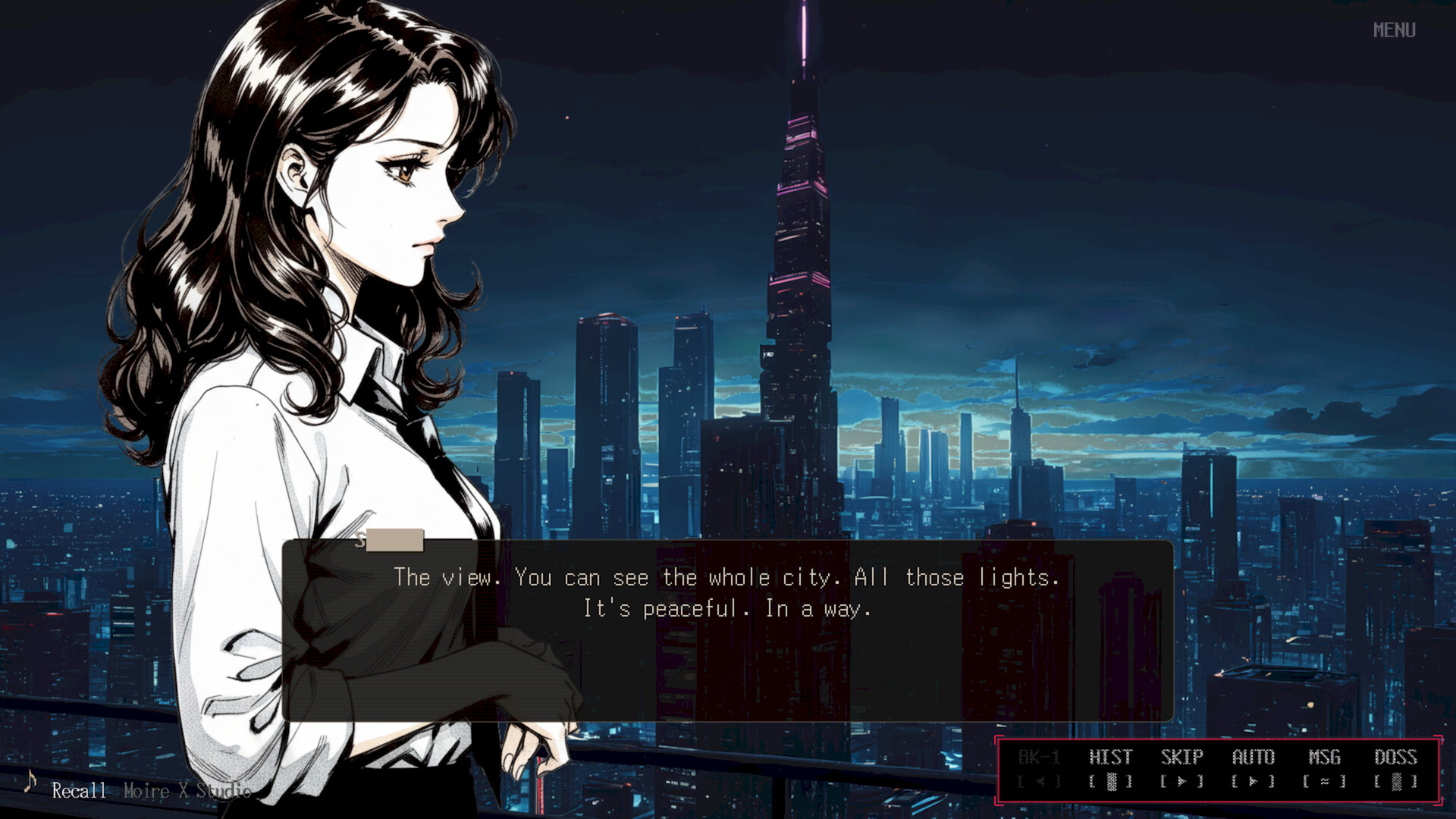 • Click through dialogue and internal monologue, or hold to advance automatically