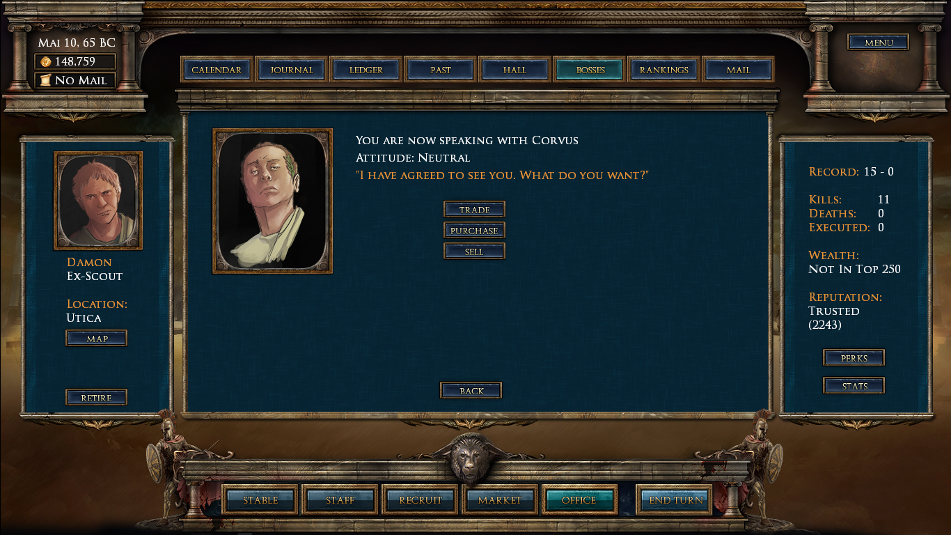 Age of Gladiators is a singleplayer strategy and management sim set during the height of the bloody games of ancient Rome. It blends elements of business simulation, stable management, training systems, tactical RPG combat, and sports sim-style character progression.