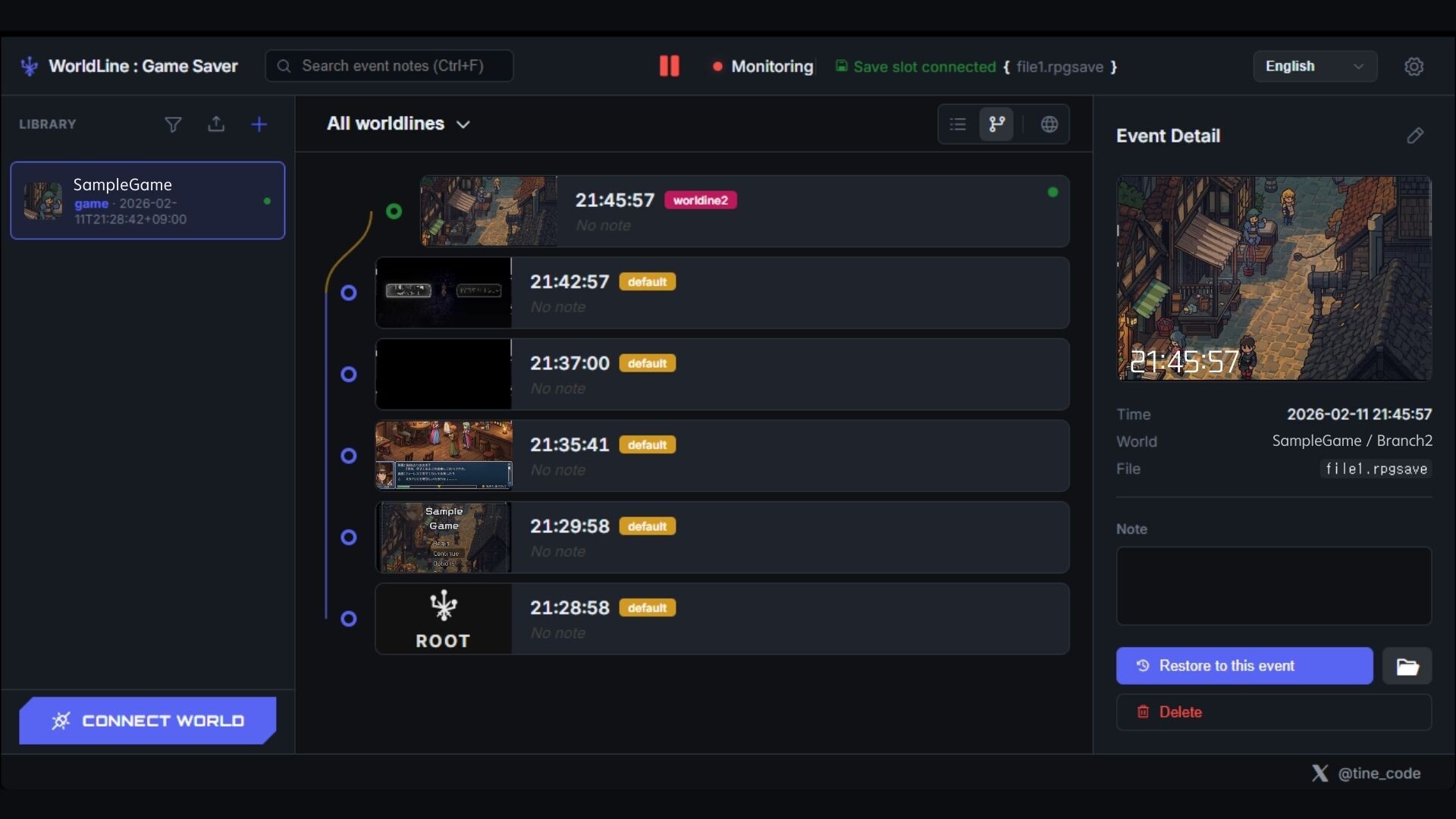 WorldLine: Game Saver is a utility that detects game save files and organizes them into timelines and branches, making it easier and clearer to manage playthroughs with multiple choices.