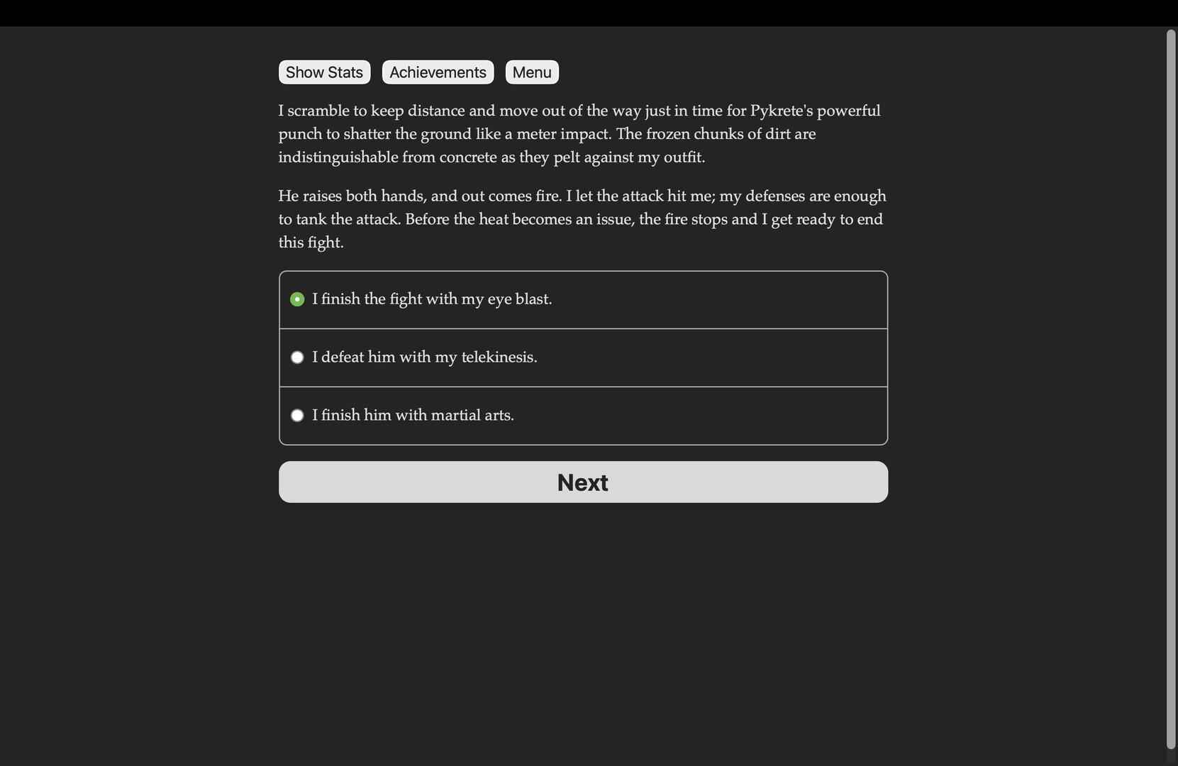 Dawn of Heroes is a 450k-word interactive novel by C. Claymore. It's entirely text-based, without graphics or sound effects, and fueled by the vast, unstoppable power of your imagination.