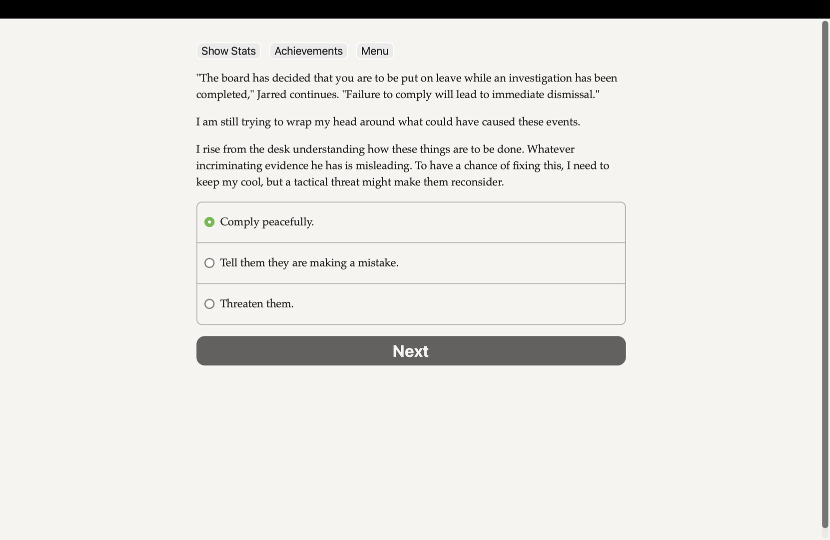 By day, you're just another citizen. By night, you defend the city. But don’t quit your day job, hero. A text-based superhero novel, 450,000 words and hundreds of choices, without graphics or sound effects.