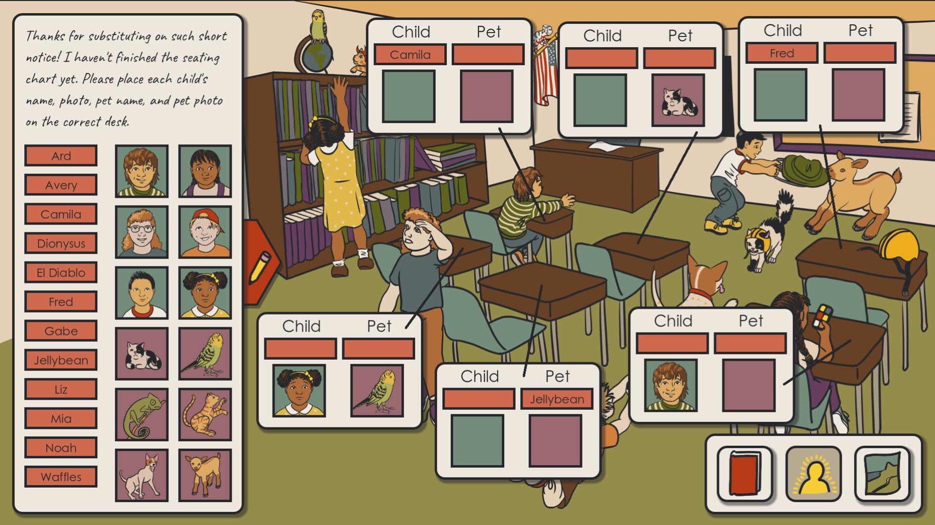 Explore the scenes, find clues, and sort out people, pets, and belongings in this cozy slice-of-life detective puzzle game. Fans of Duck Detective, Little Problems, and The Case of the Worst Day Ever will enjoy this new deduction game for all ages.