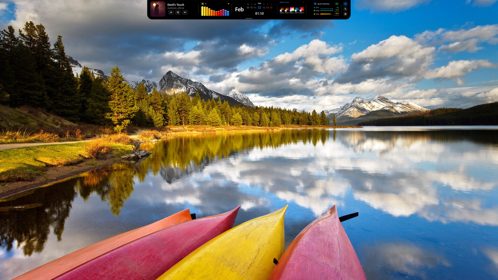 Una barra de control inteligente en la parte superior de tu pantalla. Música, info del sistema, temporizadores, notas y acceso rápido — todo en una barra elegante. Ligera, siempre accesible, muestra exactamente lo que necesitas.