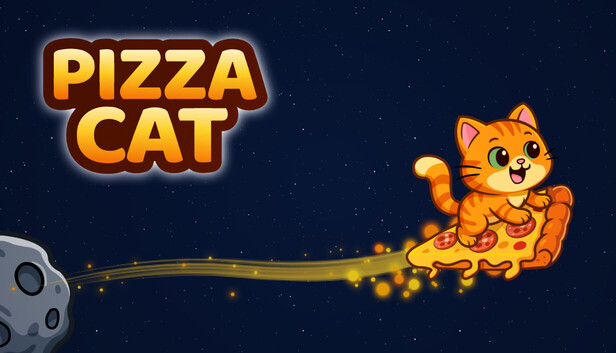 PizzaCat is a fast-paced endless arcade-style runner where you play as a determined orange tabby riding a slice of pizza through outer space.