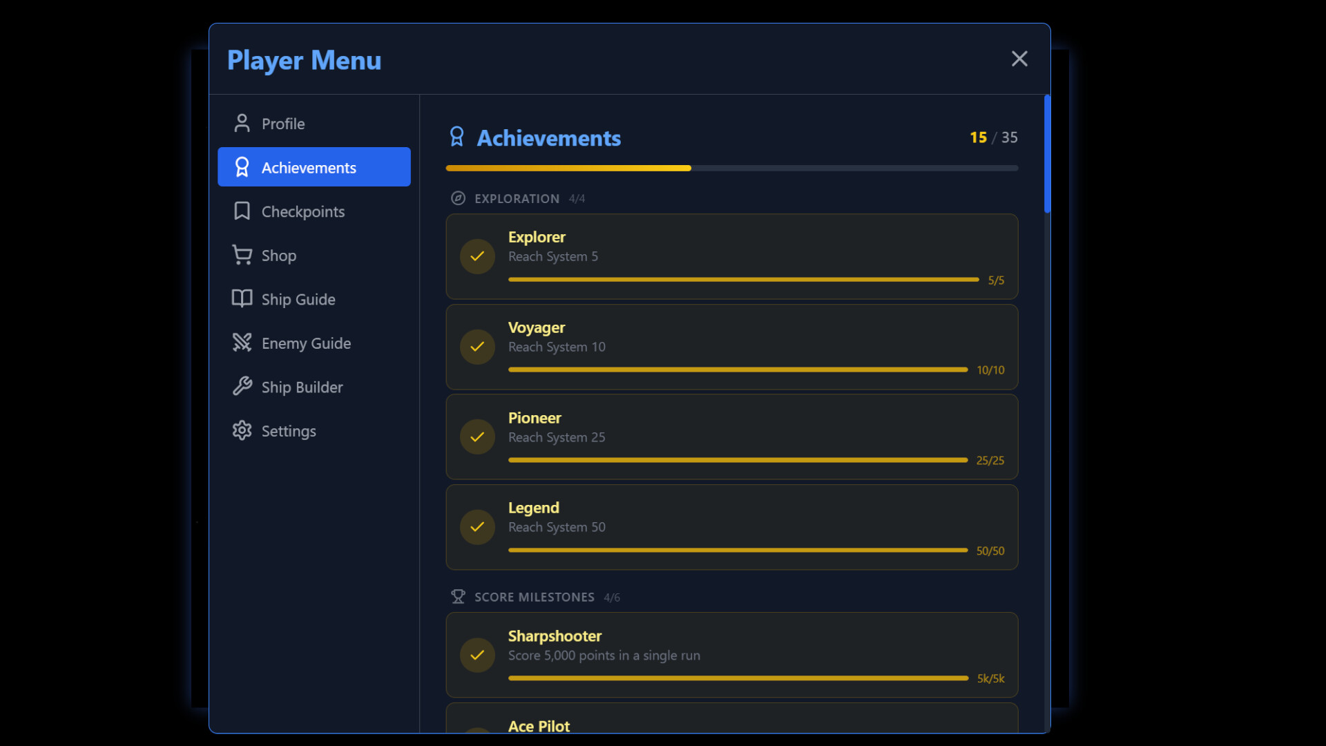 • Structured feedback prompts (for example: ship builder usability, weapon balance, difficulty curve, progression pacing).