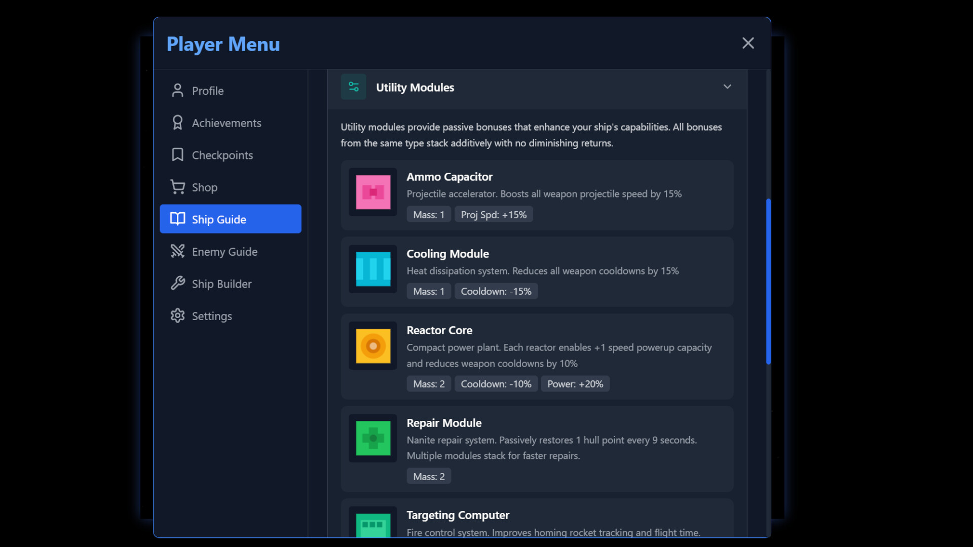 • UI/UX improvements, especially around the ship builder and stats clarity.