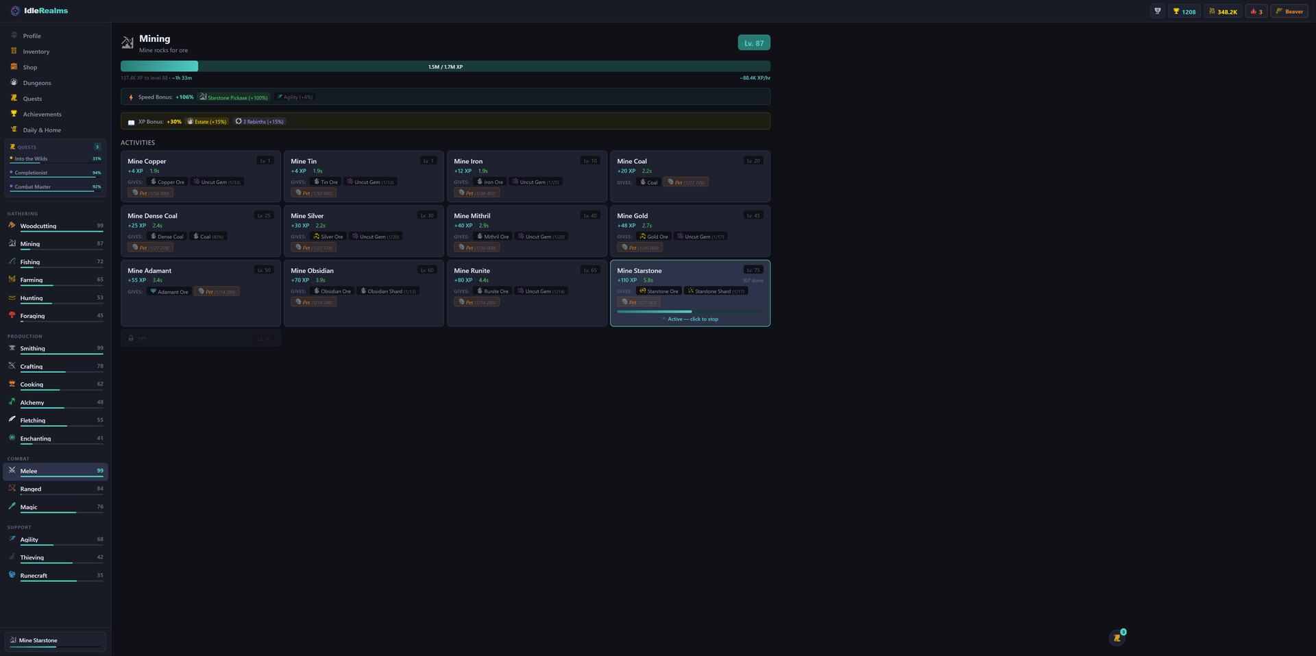 Train 18 skills, craft legendary gear, fight monsters across 6 realms, and conquer The Eternal Spire. A deep single-player idle RPG with full offline progression.