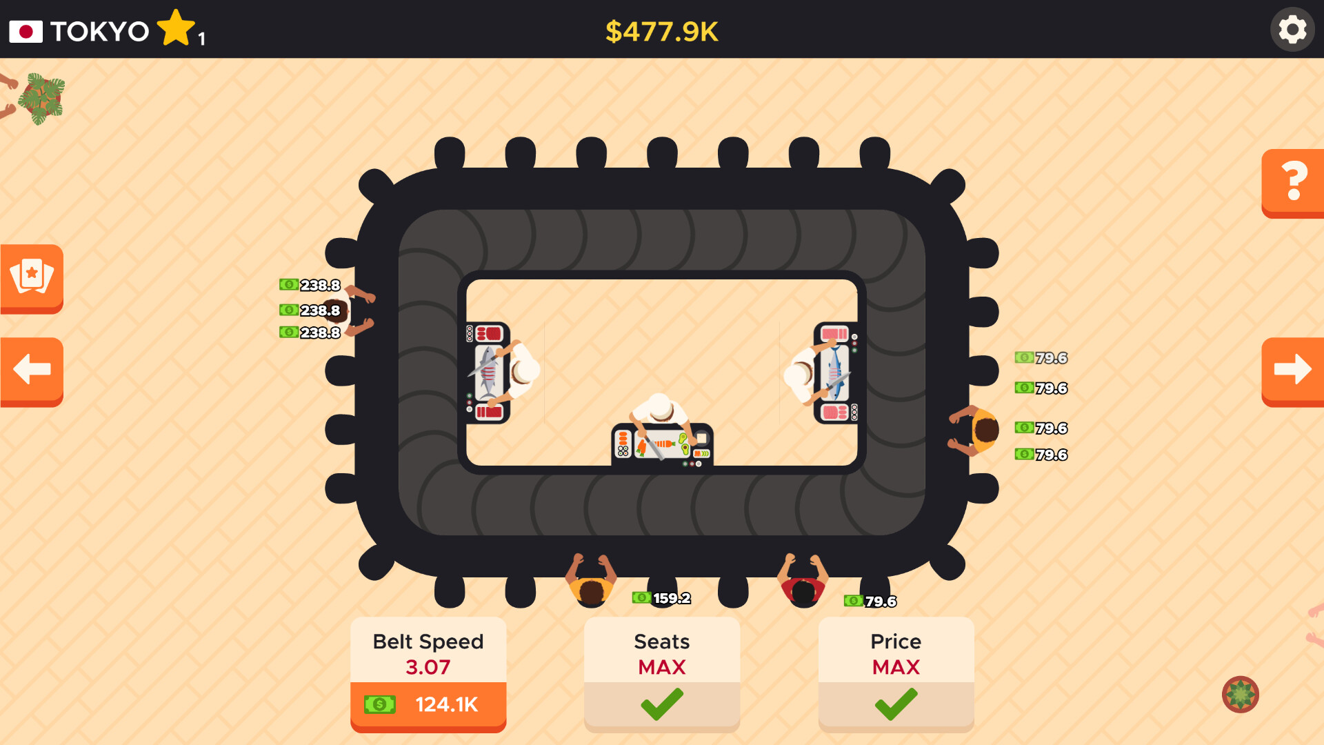 Idle Sushi Bar Tycoon is an idle game where you manage a sushi restaurant.