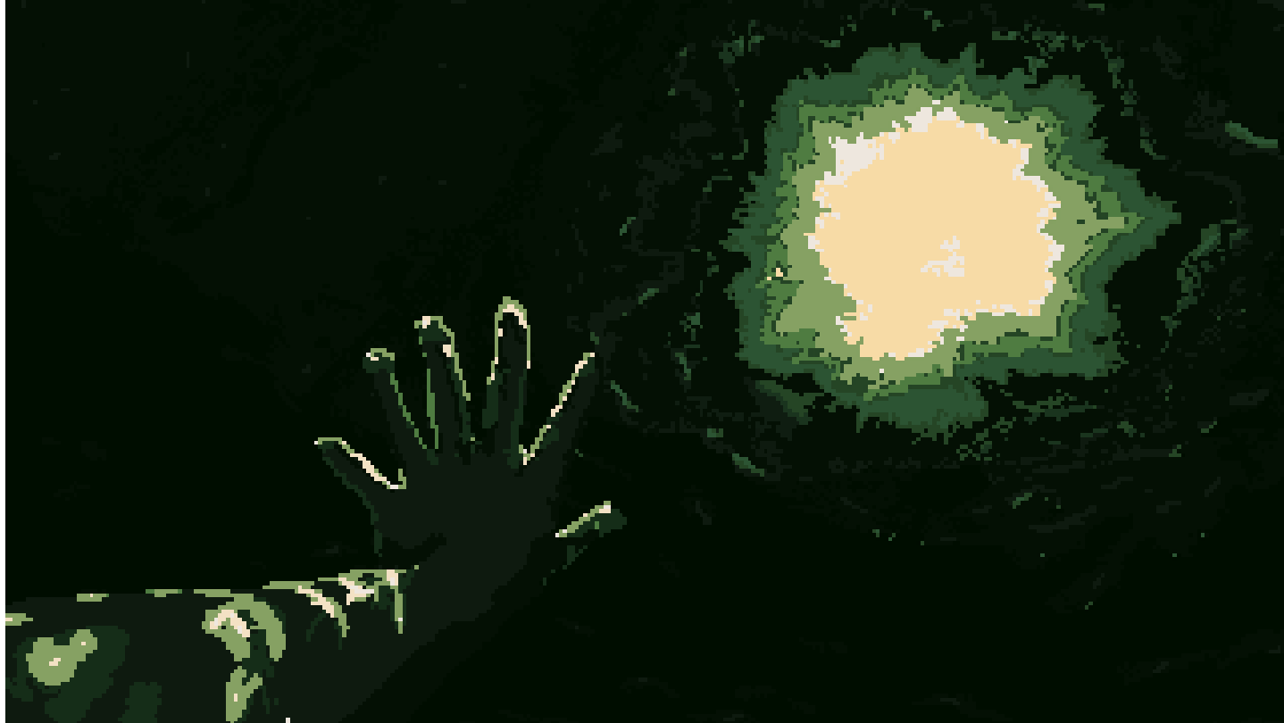 • Unique art style – Using stylised "greenscale" pixel art graphics to set the mood