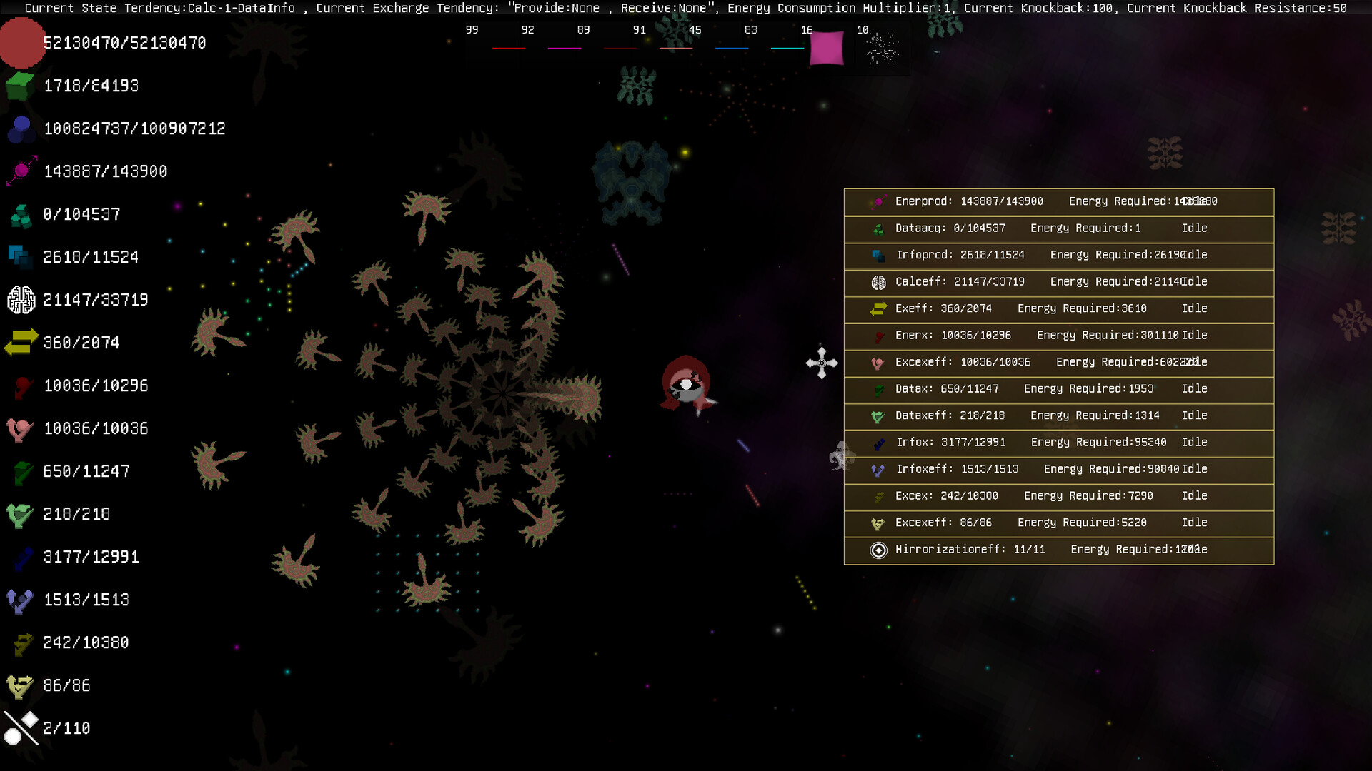 • Spend energy to enhance capabilities (energy capacity, production rates, etc.)
