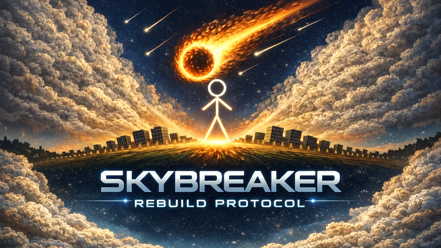 Skybreaker: Rebuild Protocol is a chaotic sandbox destruction game where you unleash catastrophic forces from the sky while stick figure survivors desperately try to rebuild and endure.